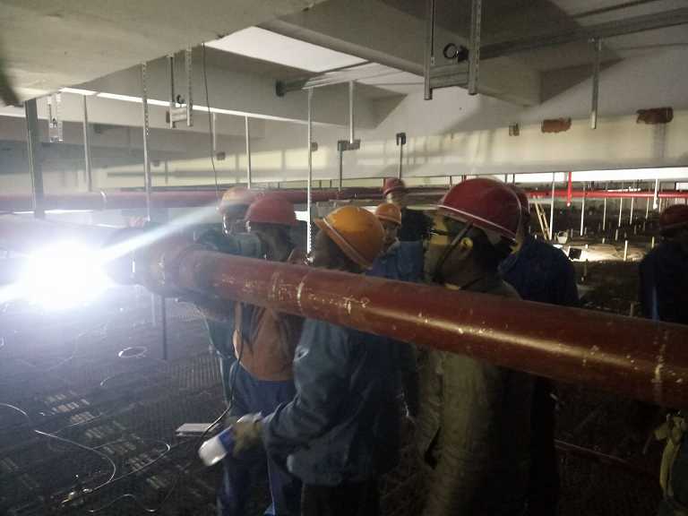 11月28日下午,公司副總經(jīng)理劉安俊一行蒞臨安徽中煙工業(yè)蚌埠卷煙廠易地搬遷項目部檢查指導(dǎo)工作。他首先檢查了項目部管理人員在崗情況,隨后不辭辛苦深入施工現(xiàn)場,來到每一個施工班組,每一個施工點檢查指導(dǎo)。特別是在高架庫屋面板消防噴淋施工點,滿堂腳手架,空間施工高度21米,劉安俊親自登上最高處施工平臺進行指導(dǎo)。項目執(zhí)行經(jīng)理郭洋等陪同檢查并就現(xiàn)場項目的管理工作及存在的困難做了匯報。