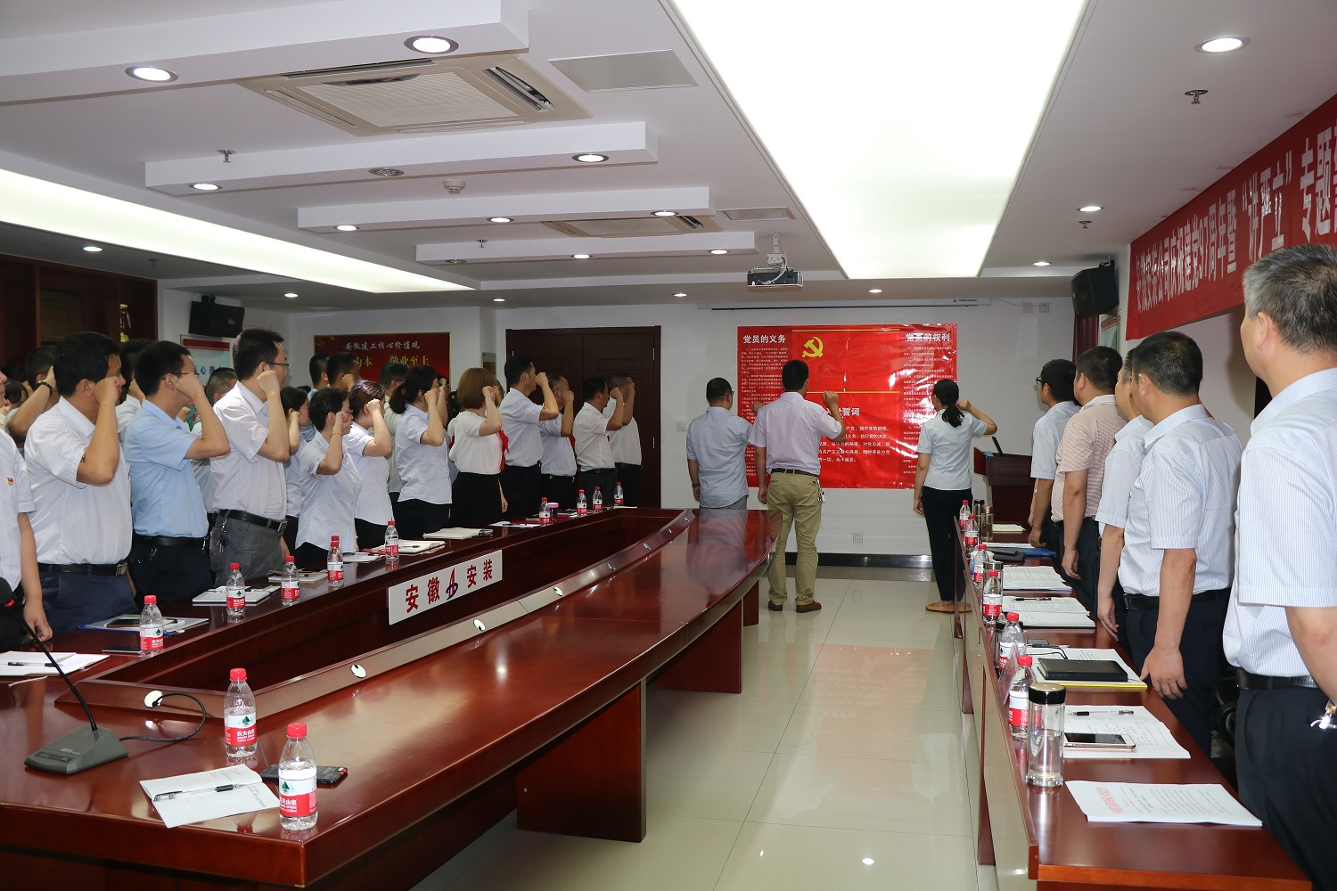 為慶祝中國(guó)共產(chǎn)黨建黨97周年,扎實(shí)開展好“講忠誠(chéng)、嚴(yán)紀(jì)律、立政德”專題警示教育,推動(dòng)全面從嚴(yán)治黨向縱深發(fā)展。7月4日下午,安徽安裝公司黨委召開慶祝建黨97周年暨“講嚴(yán)立”專題警示教育黨課報(bào)告會(huì)。公司黨委書記、副總經(jīng)理胡六中作了題為《講忠誠(chéng) 嚴(yán)紀(jì)律 立政德 做新時(shí)代合格共產(chǎn)黨員》的黨課報(bào)告。公司董事長(zhǎng)、總經(jīng)理、黨委副書記王軍邦主持會(huì)議并宣貫集團(tuán)公司慶祝建黨97周年暨黨的建設(shè)工作會(huì)議精神。黨委委員、副總經(jīng)理劉安俊宣讀表彰決定。公司領(lǐng)導(dǎo)班子成員、機(jī)關(guān)部門正副職、機(jī)關(guān)在崗黨員、分公司領(lǐng)導(dǎo)班子成員和受表彰的先進(jìn)基層黨組織、優(yōu)秀共產(chǎn)黨員和優(yōu)秀黨務(wù)工作者共70余人參加會(huì)議。