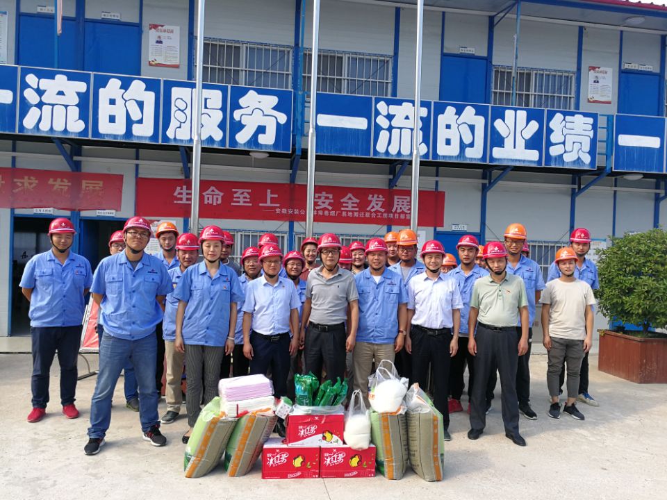 炎炎夏日、氣溫不斷攀升。為保障一線員工身體健康,7月31日下午,公司副總經(jīng)理劉安俊,公司紀(jì)委書記、工會(huì)主席李寬旭來到安徽中煙蚌埠卷煙廠項(xiàng)目部施工現(xiàn)場,看望慰問奮戰(zhàn)在一線的員工,為他們送去了綠豆、白糖、風(fēng)油精、十滴水等防暑降溫用品,帶來了濃濃的關(guān)愛和絲絲清涼。