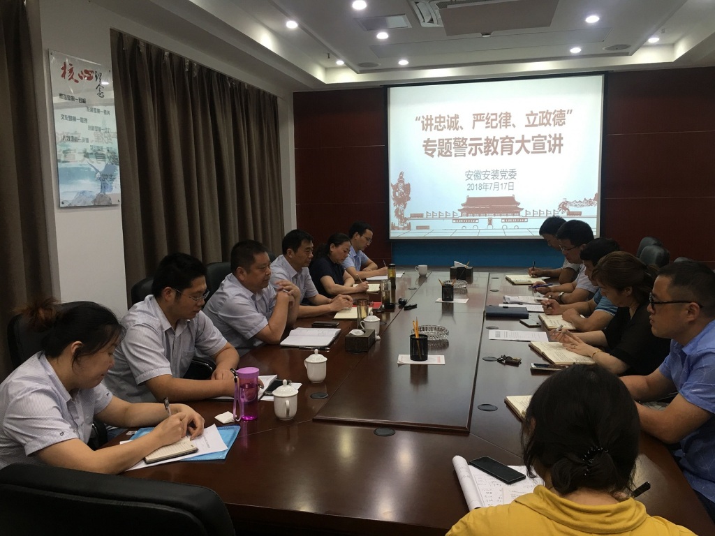 本次宣講以《“講忠誠(chéng)、嚴(yán)紀(jì)律、立政德”,做“忠誠(chéng)、干凈、擔(dān)當(dāng)”的黨員干部》為主題,圍繞魯煒案、徽商集團(tuán)窩案反面教材,省委巡視組對(duì)部分省屬企業(yè)在巡視發(fā)現(xiàn)的問題,集團(tuán)公司黨委大宣講、大督查發(fā)現(xiàn)的問題,安裝公司目前存在的問題,對(duì)照“六聚焦六整肅”深入查擺存在的問題,要求黨員干部要保持絕對(duì)忠誠(chéng),嚴(yán)守紀(jì)律規(guī)矩,樹立良好政德,將從嚴(yán)管黨治黨落到實(shí)處。還通過對(duì)集團(tuán)公司、公司優(yōu)秀共產(chǎn)黨員、優(yōu)秀黨務(wù)工作者先進(jìn)模范事例的宣貫,要求黨員干部要在履職盡責(zé)上樹標(biāo)桿、敢于擔(dān)當(dāng)上作表率,做“忠誠(chéng)、干凈、擔(dān)當(dāng)”的黨員干部。