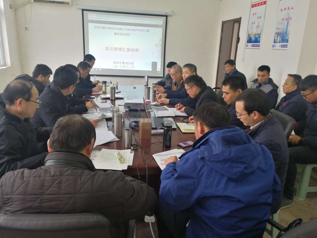 12月19日下午,集團公司2018年度工程項目管理綜合檢查組專家一行蒞臨宿州中糧無水乙醇搬遷技改項目開展2018年度工程項目管理檢查工作。公司總工程師吳繼成、公司工管部人員及項目部人員陪同檢查。