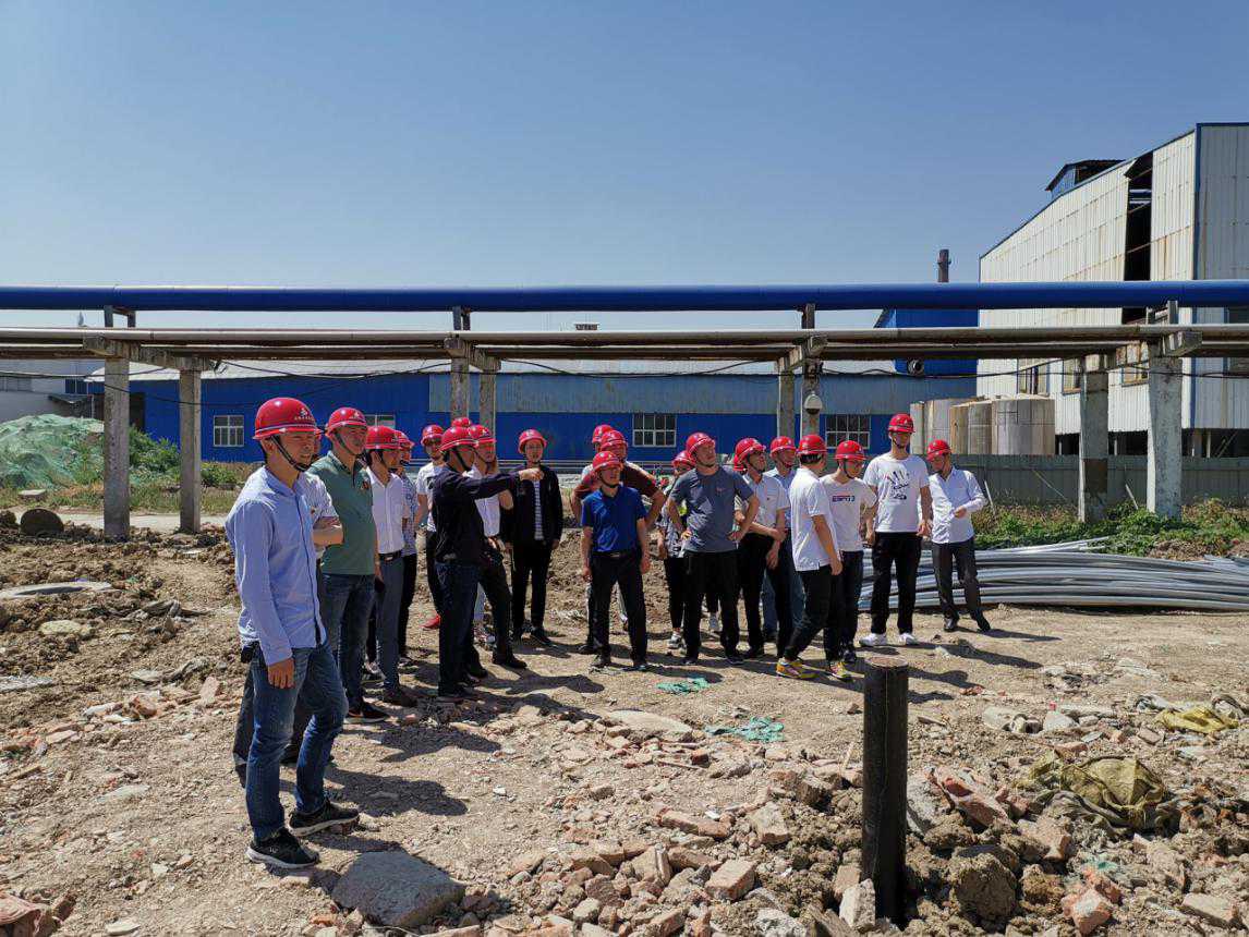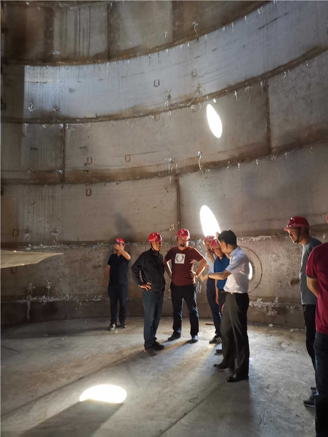 出發(fā)前,合肥分公司經(jīng)理趙永峰作了動員強調(diào),他指出,本次觀摩工業(yè)項目是我們學(xué)習(xí)的榜樣,每一位同志都要珍惜這次難得的學(xué)習(xí)機會,到工地后要實地細(xì)致觀察,認(rèn)真聽取講解,設(shè)身處地思考,力爭取得實效。上午全體人員到達(dá)宿州中糧項目工地后,受到了蚌埠分公司領(lǐng)導(dǎo)和項目部全體干部員工的熱烈歡迎,分公司經(jīng)理趙銘亮、生產(chǎn)副經(jīng)理張漢軍親自擔(dān)任現(xiàn)場講解。參觀隊伍在兩位經(jīng)理的帶領(lǐng)下,深入現(xiàn)場分別參觀了乙醇罐體群、發(fā)酵罐體群、以及冷水機組、工藝管線的安裝現(xiàn)場,兩位經(jīng)理結(jié)合現(xiàn)場工程實體從本項目技術(shù)重難點、施工工藝、安全管理等方面向合肥分公司的同事們進行一一的講解。在施工現(xiàn)場,大家結(jié)合自身專業(yè)實際尋找切入點針對性地進行觀摩學(xué)習(xí),唯恐落下一個可以學(xué)習(xí)的機會,詳細(xì)記錄現(xiàn)場優(yōu)秀的施工做法,針對有疑問的地方及時向相應(yīng)專業(yè)技術(shù)負(fù)責(zé)人詢問解決辦法。