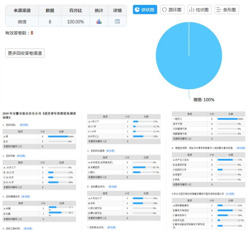 隨后,為進(jìn)一步深入了解青年員工思想、工作、生活狀況,根據(jù)新時(shí)期青年思想特點(diǎn),結(jié)合分公司實(shí)際情況,團(tuán)支部利用手機(jī)微信掃碼方式在會(huì)議現(xiàn)場對每位青年員工進(jìn)行了思想狀況調(diào)查。團(tuán)支部將根據(jù)統(tǒng)計(jì)分析報(bào)告,針對大家所需所想,廣泛開展形式多樣、內(nèi)容豐富的集體活動(dòng)。
