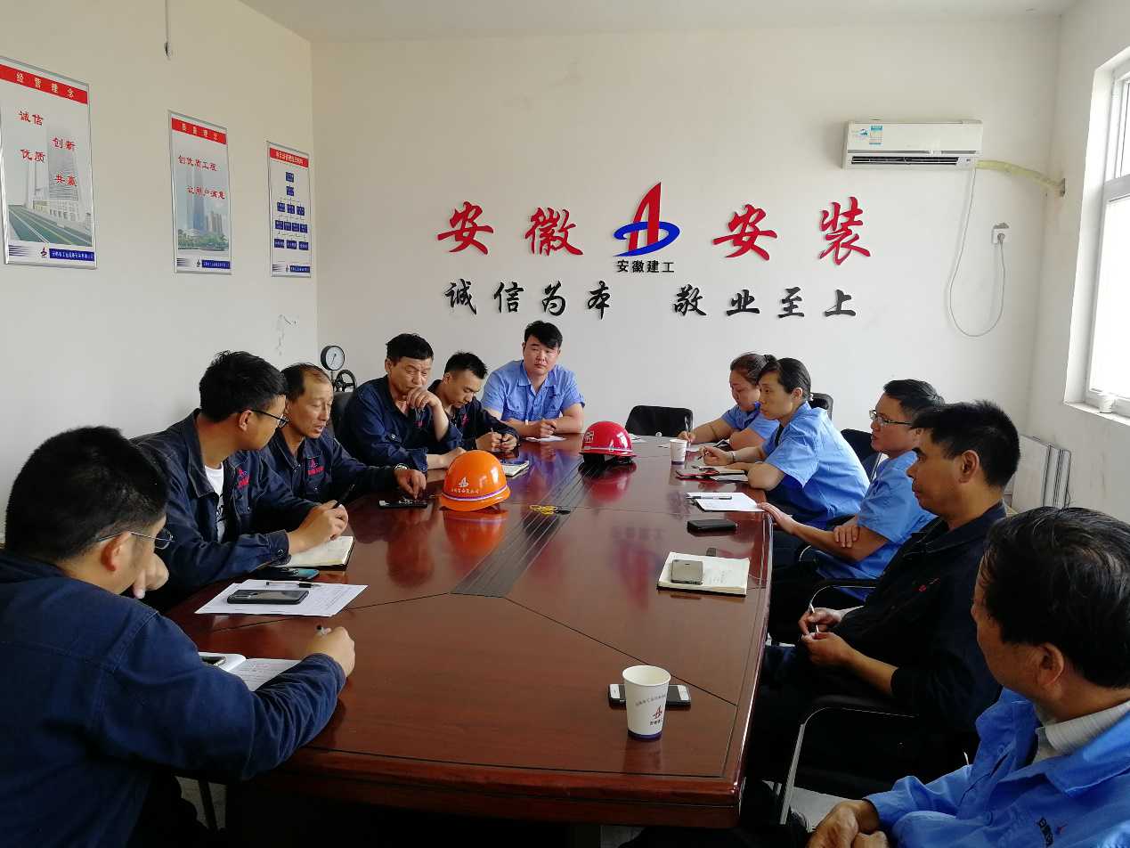 在對施工現(xiàn)場進(jìn)行全面安全檢查后,隨即在會議室召開會議,項(xiàng)目部全體管理人員及各項(xiàng)目班組負(fù)責(zé)人參加。項(xiàng)目執(zhí)行經(jīng)理張漢軍首先匯報(bào)了現(xiàn)場的進(jìn)度、質(zhì)量等情況。