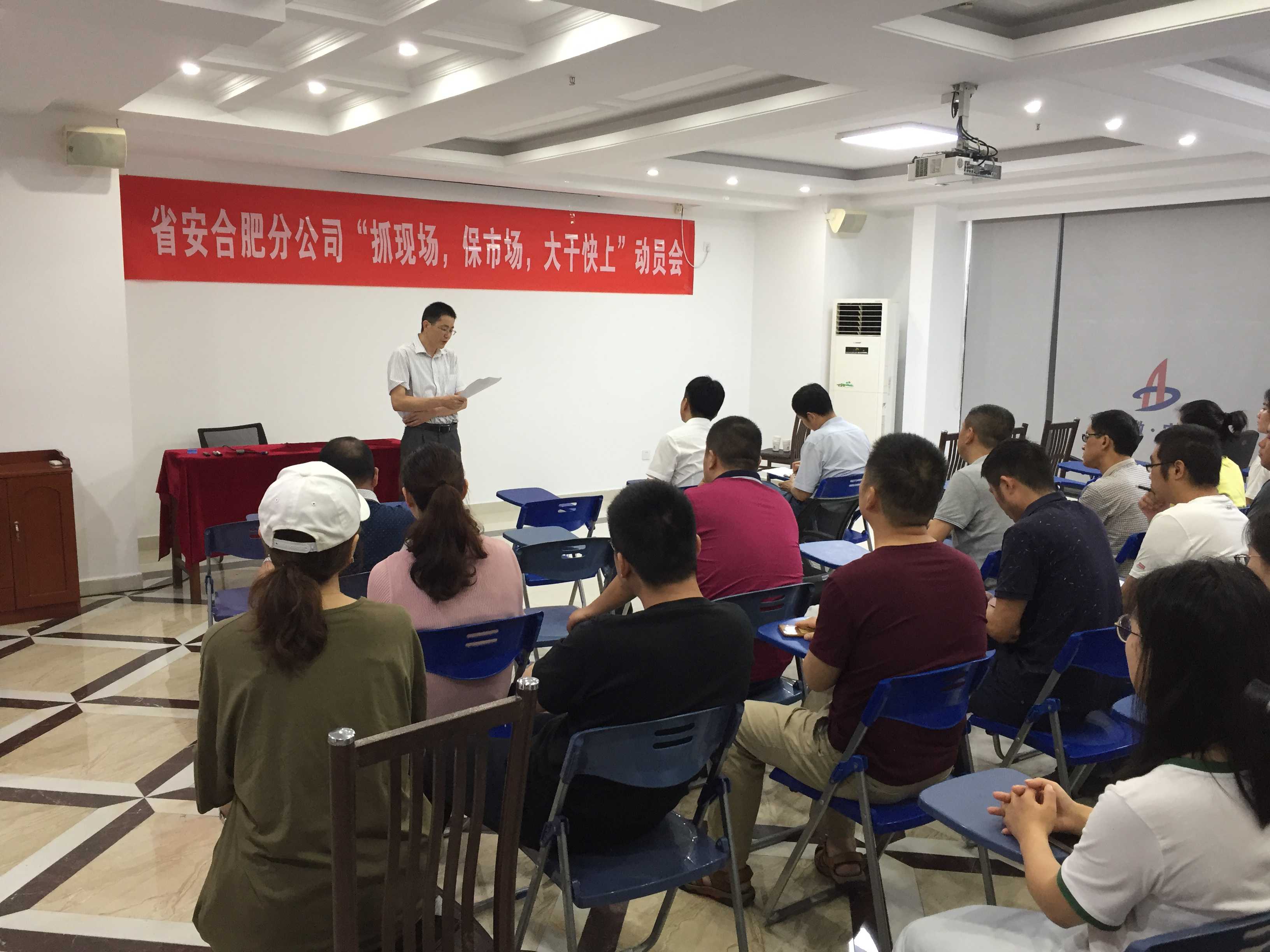 合肥分公司積極響應(yīng)公司的號(hào)召,2019年6月19日上午,分公司組織機(jī)關(guān)全體人員和合肥地區(qū)項(xiàng)目經(jīng)理及項(xiàng)目管理人員共計(jì)30余人在公司15樓職工之家召開了“抓現(xiàn)場(chǎng)、保市場(chǎng)、大干快上”動(dòng)員會(huì)。