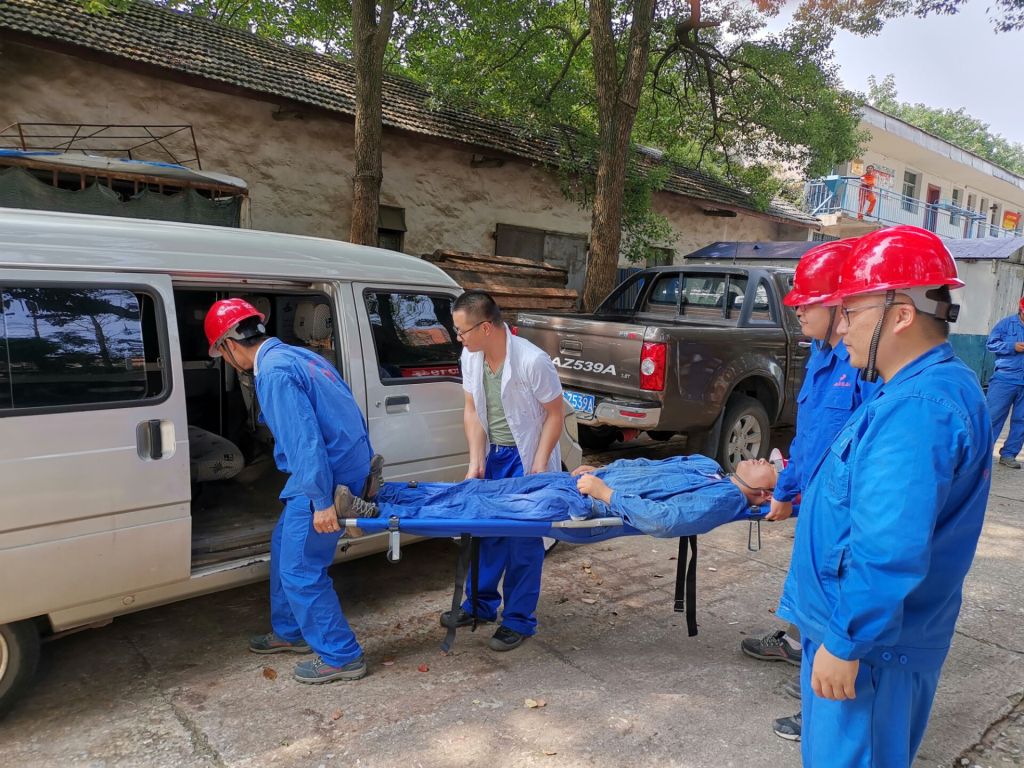 下午2點,隨著現(xiàn)場警報器長笛示警,應(yīng)急救援演練拉開了序幕。施工班組負(fù)責(zé)人命令現(xiàn)場立即停止作業(yè),所有施工人員撤離出吊裝現(xiàn)場,并立即撥打120急救電話報告現(xiàn)場安全員。在接到通知后,項目部立即啟動應(yīng)急預(yù)案,并組織各小組進(jìn)行救援。警戒組封鎖事故現(xiàn)場,維持現(xiàn)場秩序;醫(yī)療救護(hù)組對傷員進(jìn)行了簡單的救治和護(hù)理;疏散組負(fù)責(zé)對現(xiàn)場與救援無關(guān)人員進(jìn)行疏散,防止事態(tài)擴(kuò)大。各組各司其職,演練現(xiàn)場井然有序,最后救護(hù)車輛和醫(yī)療人員趕到現(xiàn)場,將傷員送往醫(yī)院,演練活動結(jié)束。