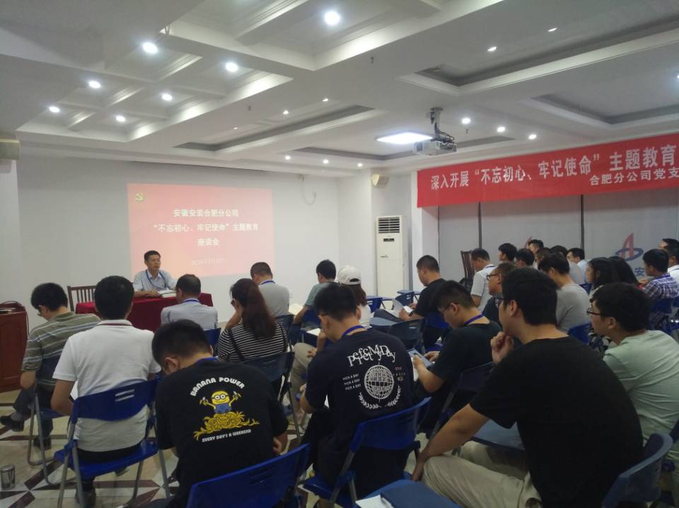 為深入開展“不忘初心,牢記使命”主題教育活動,將主題教育落到實處、產(chǎn)生實效,切實加強分公司黨員干部的責任感、使命感、擔當感,合肥分公司黨支部于7月17日下午在公司十五樓職工之家召開了“不忘初心,牢記使命”主題教育座談會,分公司領導班子成員、機關全體人員、在肥項目部人員共計40余人參與會議。會議由分公司黨支部書記胡迎東主持。