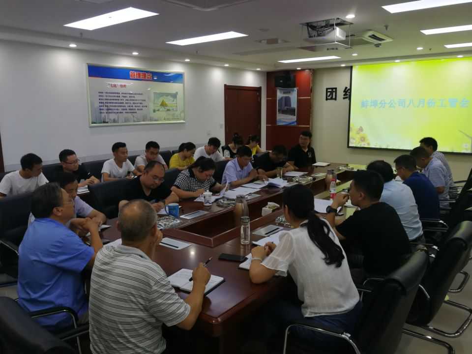 2019年7月31日下午,蚌埠分公司召開八月份份工程管理會(huì)議。公司副總經(jīng)理高飛攜工程管理部相關(guān)人員荏臨指導(dǎo)工作。分公司領(lǐng)導(dǎo)班子成員、分公司機(jī)關(guān)各部門負(fù)責(zé)人及各項(xiàng)目經(jīng)理參加了會(huì)議,會(huì)議由分公司副經(jīng)理張漢軍主持。
