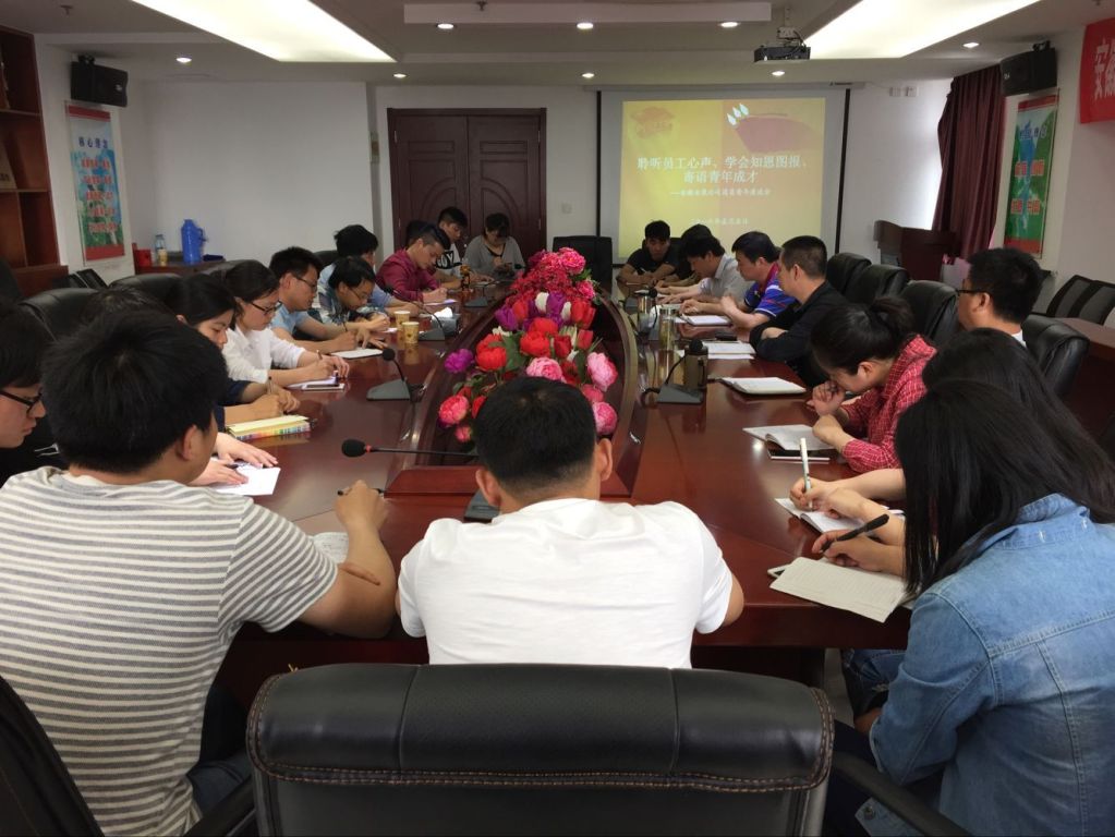 5月5日下午,安徽安裝公司團(tuán)委召開了以“聆聽員工心聲、學(xué)會(huì)知恩圖報(bào)、寄語青年成才”為主題的團(tuán)員青年座談會(huì),公司黨委書記、副總經(jīng)理胡六中,紀(jì)委書記、工會(huì)主席李寬旭,副總經(jīng)理王勝利應(yīng)邀參加了座談會(huì),與各位團(tuán)員青年交流談心。座談會(huì)由公司團(tuán)委書記王偉主持。