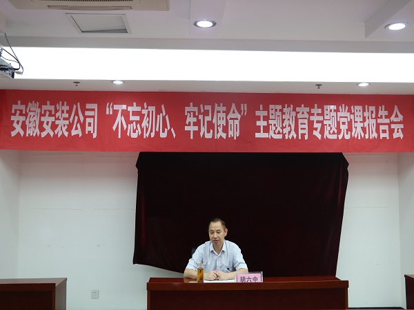 根據(jù)安徽安裝公司黨委“不忘初心、牢記使命”主題教育工作部署安排,8月8日下午,安徽安裝公司召開“不忘初心、牢記使命”主題教育專題黨課報告會,集團主題教育第一指導組應邀出席報告會。