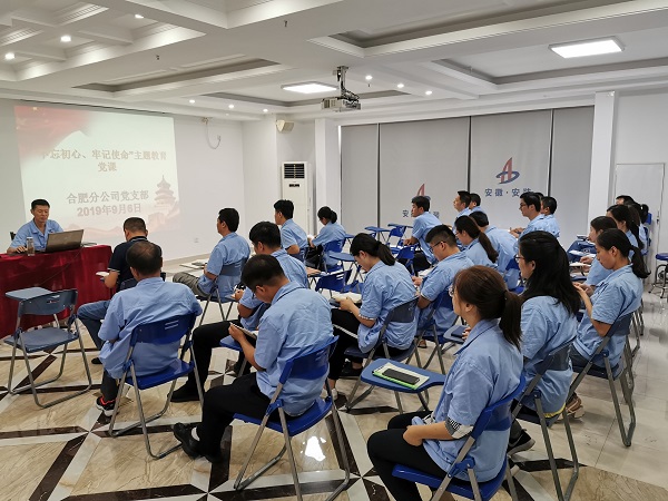 根據(jù)公司黨委“不忘初心、牢記使命”主題教育工作部署,9月6日下午,合肥分公司黨支部召開“不忘初心、牢記使命”主題教育黨課報(bào)告會(huì),黨支部書記胡迎東作了題為《“不忘初心、牢記使命”主題教育成果推動(dòng)合肥分公司發(fā)展》的黨課報(bào)告。分公司領(lǐng)導(dǎo)班子成員、全體黨員、機(jī)關(guān)工作人員參與會(huì)議聽取了報(bào)告。