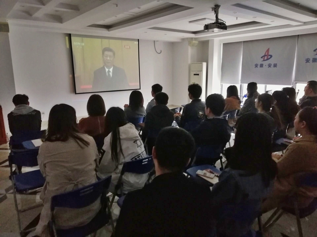 4月30日10時(shí)30分,紀(jì)念五四運(yùn)動(dòng)100周年大會(huì)在人民大會(huì)堂舉行。安徽安裝團(tuán)委組織團(tuán)員青年集中收看了大會(huì)直播,大會(huì)在莊嚴(yán)雄偉的國(guó)歌中拉開(kāi)序幕,習(xí)近平總書(shū)記發(fā)表重要講話。