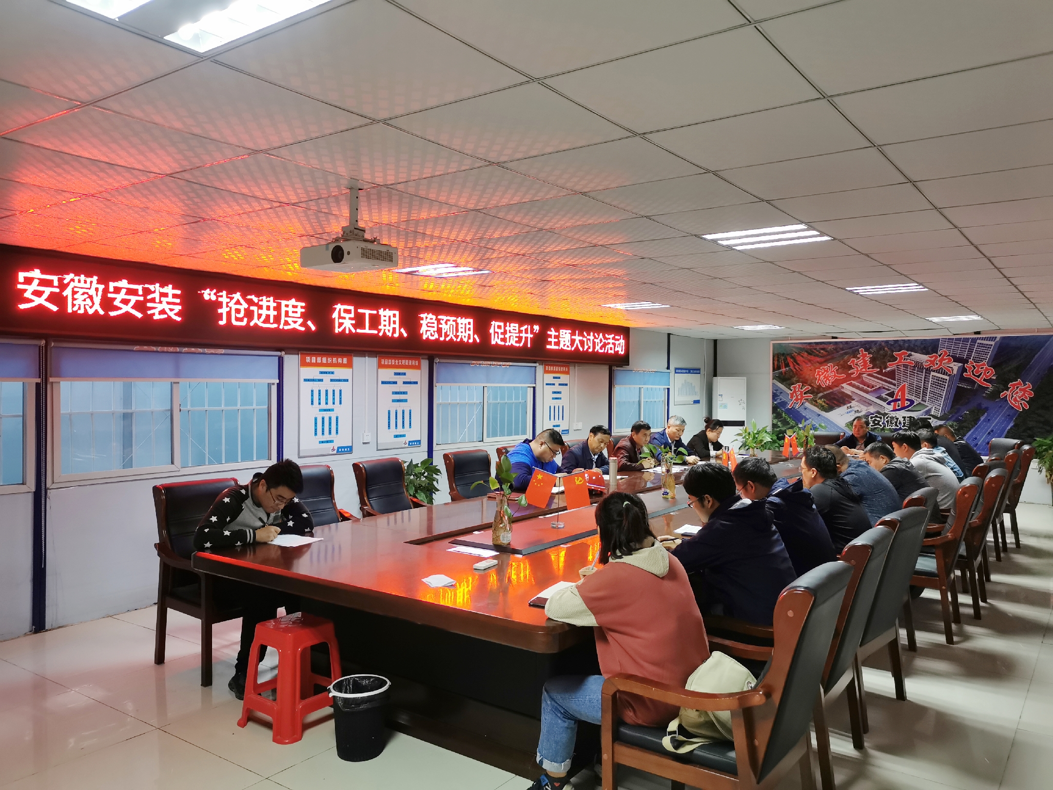 為認真貫徹集團公司“搶進度、保工期、穩(wěn)預(yù)期、促提升”勞動競賽活動精神,10月10日下午,安徽安裝公司圍繞“不能按時交工為恥辱”的履約意識,在阜陽潁東區(qū)中醫(yī)院項目部會議室,組織開展“搶進度、保工期、穩(wěn)預(yù)期、促提升”主題大討論活動。公司副總經(jīng)理高飛,紀委書記、工會主席李寬旭,總工程師吳繼成,公司相關(guān)部門負責人,房建分公司領(lǐng)導(dǎo)班子成員,項目經(jīng)理、技術(shù)負責人等共計20余人參加會議,會議由李寬旭主持。