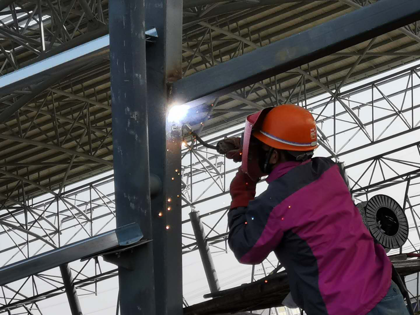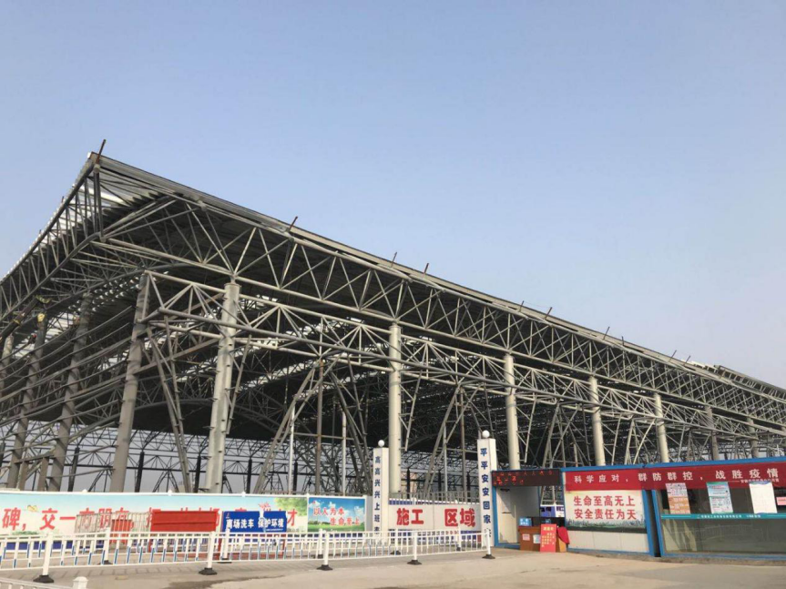 安徽省·水利部淮河水利委員會水利科學(xué)研究院淮河試驗研究中心(水工河工模型試驗廳)一期工程,水工河工模型試驗廳主要進行各種水流模型試驗,通過整體水工模型試驗,率定泄洪閘、排沙孔泄流能力、描述進出口水流流態(tài),對護岸范圍提出合理的防護方式,優(yōu)化泄洪消能建筑物布置和體型等發(fā)揮巨大作用。項目主要施工內(nèi)容為新建水工河工模型試驗一廳鋼結(jié)構(gòu)及附屬土建工程,建筑面積約20000㎡,基礎(chǔ)形式為長螺旋鉆孔灌注樁,結(jié)構(gòu)形式為排架柱(圓鋼管)+三肢管桁架結(jié)構(gòu),頂部成弧形空間結(jié)構(gòu)形式,桁架跨度約100m,跨中為四聯(lián)拱(三角桁架),安裝高度最高24m,鋼材用量1800多噸,為目前安徽省建設(shè)第二大跨度的鋼結(jié)構(gòu)工程。目前,該項目整體鋼結(jié)構(gòu)建設(shè)已基本完成,主要施工內(nèi)容是水電安裝、裝飾、幕墻各個分項建設(shè)。