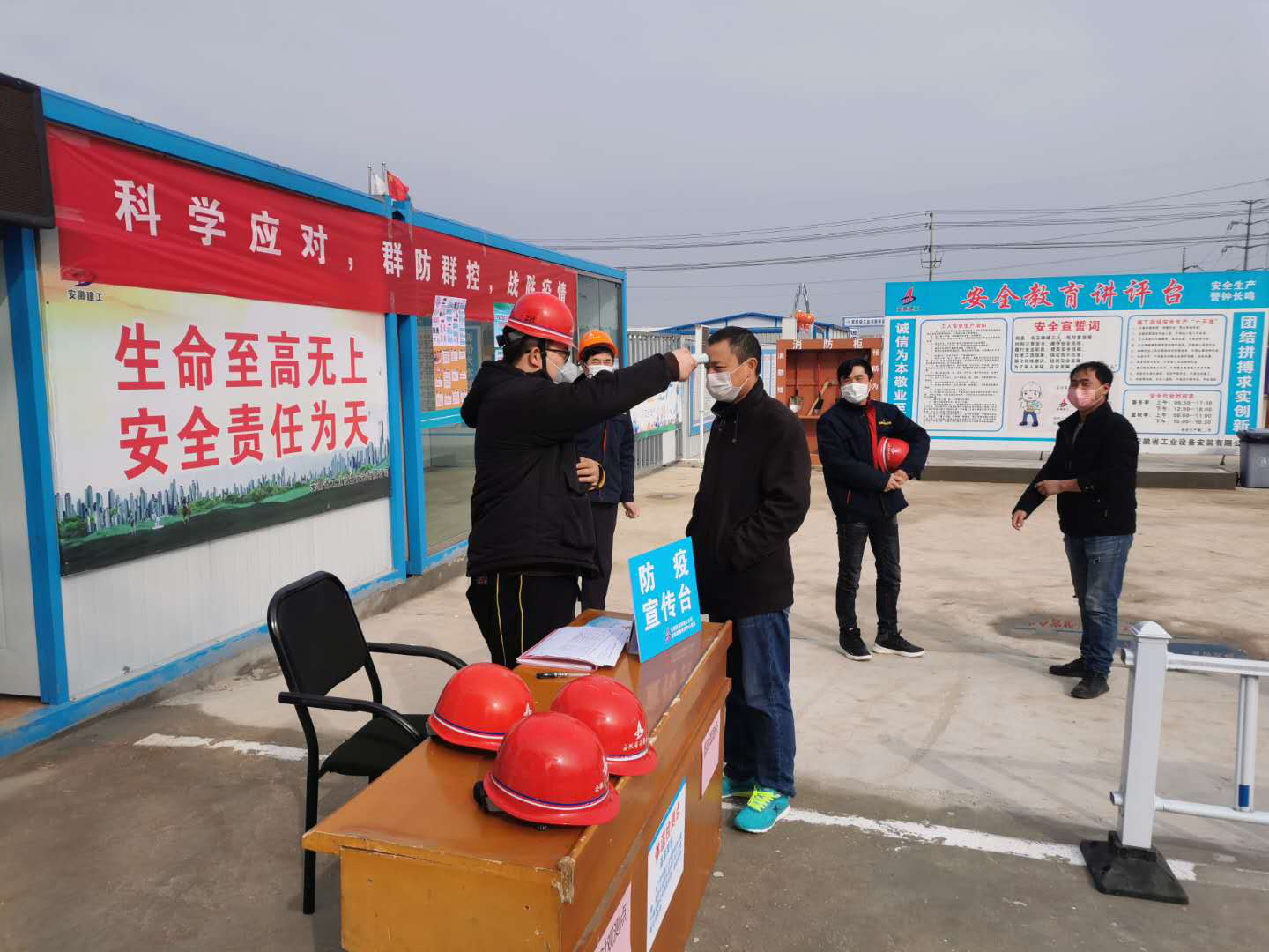 “在做好疫情防控的同時,項目已于2月25日開始復(fù)工建設(shè),管理人員10人全部到場。3月3日現(xiàn)場勞務(wù)人員已到超過70%,在疫情防控的特殊時期為確保項目順利復(fù)工,提前做好了防疫工作的相關(guān)準(zhǔn)備,對所有項目建設(shè)的人員實行嚴(yán)格排查,建立人員信息檔案,對其進行一對一防疫和安全施工業(yè)務(wù)培訓(xùn)。在項目上,員工采用了分餐制,每天有專人對生活垃圾進行統(tǒng)一清運、處理,對辦公區(qū)、居住區(qū)、公共場所等進行消毒殺菌。目前無人員發(fā)熱情況,無確診或疑似病例。