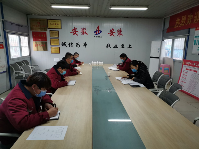 支部分別通過黨員視頻會、項目例會、團支部會議等多種形式學(xué)習(xí)宣貫安徽建工控股一屆七次職代會精神、安徽安裝第十六屆七次職代會精神、《安徽建工集團控股有限公司疫情防控期間復(fù)工管理方案》及《安徽安裝公司關(guān)于切實做好復(fù)工復(fù)產(chǎn)前疫情防控工作的通知》等疫情防控相關(guān)文件精神。與此同時,為營造濃厚的學(xué)習(xí)氛圍,還在項目現(xiàn)場制作張貼宣傳展板,并把學(xué)習(xí)資料上傳到分公司QQ工作群,把職代會精神和疫情防控文件宣傳至項目一線。