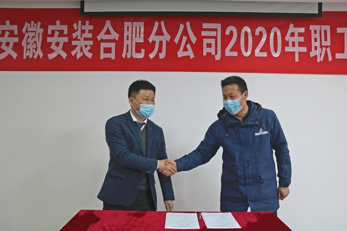 3月27日上午,安徽安裝合肥分公司召開2020年職工大會。公司黨委書記、董事長胡六中,紀委書記、工會主席李寬旭出席大會并講話。分公司黨支部書記胡迎東主持會議。