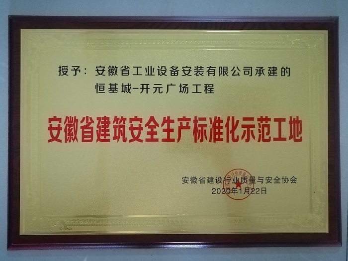 近日,安徽安裝承建的淮北恒基城開元廣場項(xiàng)目榮獲“安徽省建筑安全生產(chǎn)標(biāo)準(zhǔn)化示范工地”稱號(hào),為公司在安全生產(chǎn)方面樹立了良好的企業(yè)形象。