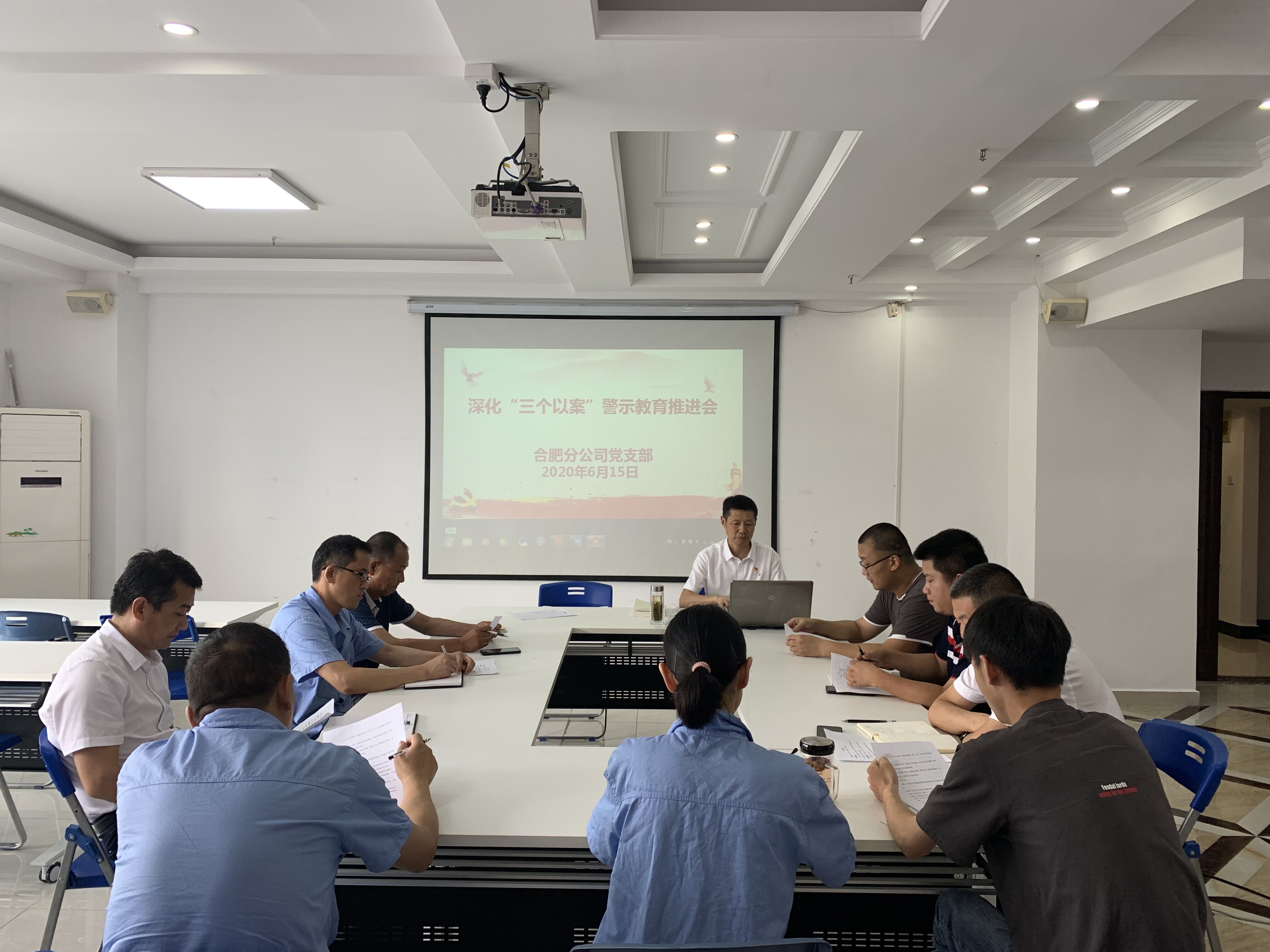 6月15日下午,合肥分公司黨支部召開深化“三個(gè)以案”警示教育推進(jìn)會,黨支部書記胡迎東主持會議。分公司領(lǐng)導(dǎo)班子、機(jī)關(guān)全體黨員參會,項(xiàng)目部黨員以視頻會議形式同步參加。