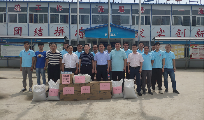 黃代一行將綠豆、白糖、人丹、十滴水等防暑降溫用品親自送到員工手中,向奮戰(zhàn)在一線的員工們表示慰問和感謝,叮囑大家要做好防暑降溫工作,使項目部員工在炎炎夏日中,感受到了一抹沁人心扉的清涼。