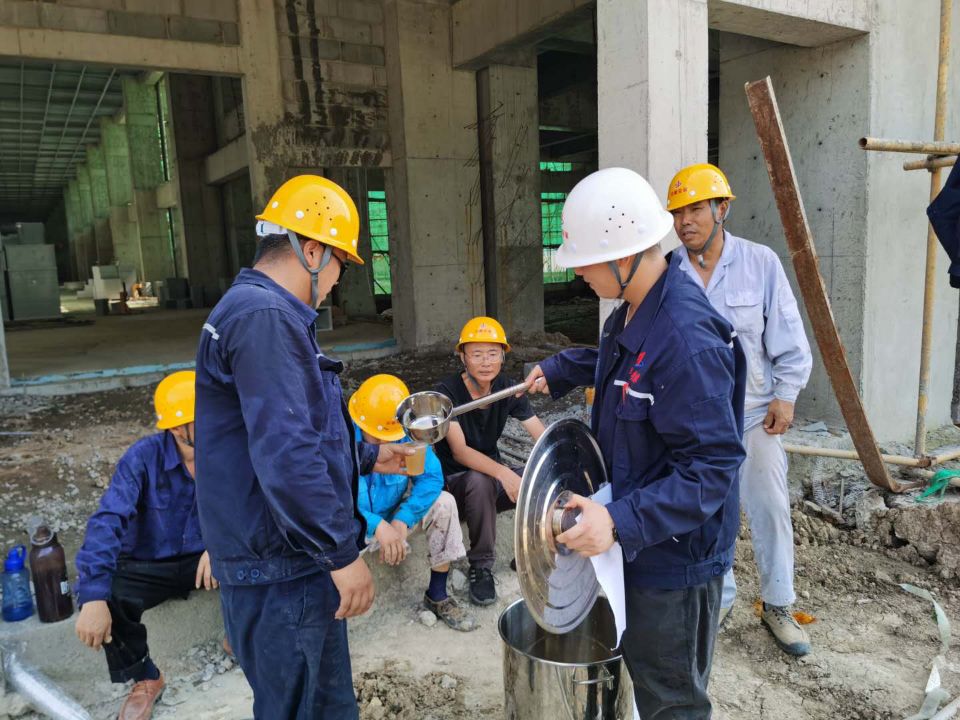 一是認真做好防暑降溫工作。及時召開項目專題會議,全面落實防暑降溫及勞動保護措施。項目部為各施工班組配發(fā)了人丹、十滴水、風油精等防暑降溫藥品,每天定時將綠豆湯、茶水等送到各施工點,確保飲食及環(huán)境衛(wèi)生,并合理調整作業(yè)時間,確保施工人員“清涼”到位。