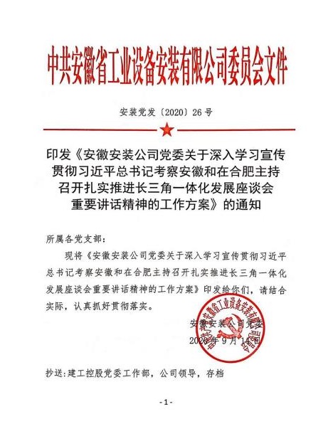 一是公司黨委迅速嚴(yán)密部署學(xué)習(xí)宣傳貫徹各項(xiàng)工作。98日,公司黨委理論中心組率先帶頭,認(rèn)真學(xué)習(xí)重要講話精神,深刻交流研討。914日,安徽安裝公司黨委下發(fā)《關(guān)于深入學(xué)習(xí)宣傳貫徹習(xí)近平總書記考察安徽和在合肥主持召開扎實(shí)推進(jìn)長三角一體化發(fā)展座談會重要講話精神的工作方案》,結(jié)合公司實(shí)際,精心嚴(yán)密部署“大學(xué)習(xí)”“大宣傳”“大貫徹”和“大落實(shí)”工作,確保公司上下人人都學(xué)習(xí),人人都領(lǐng)會。