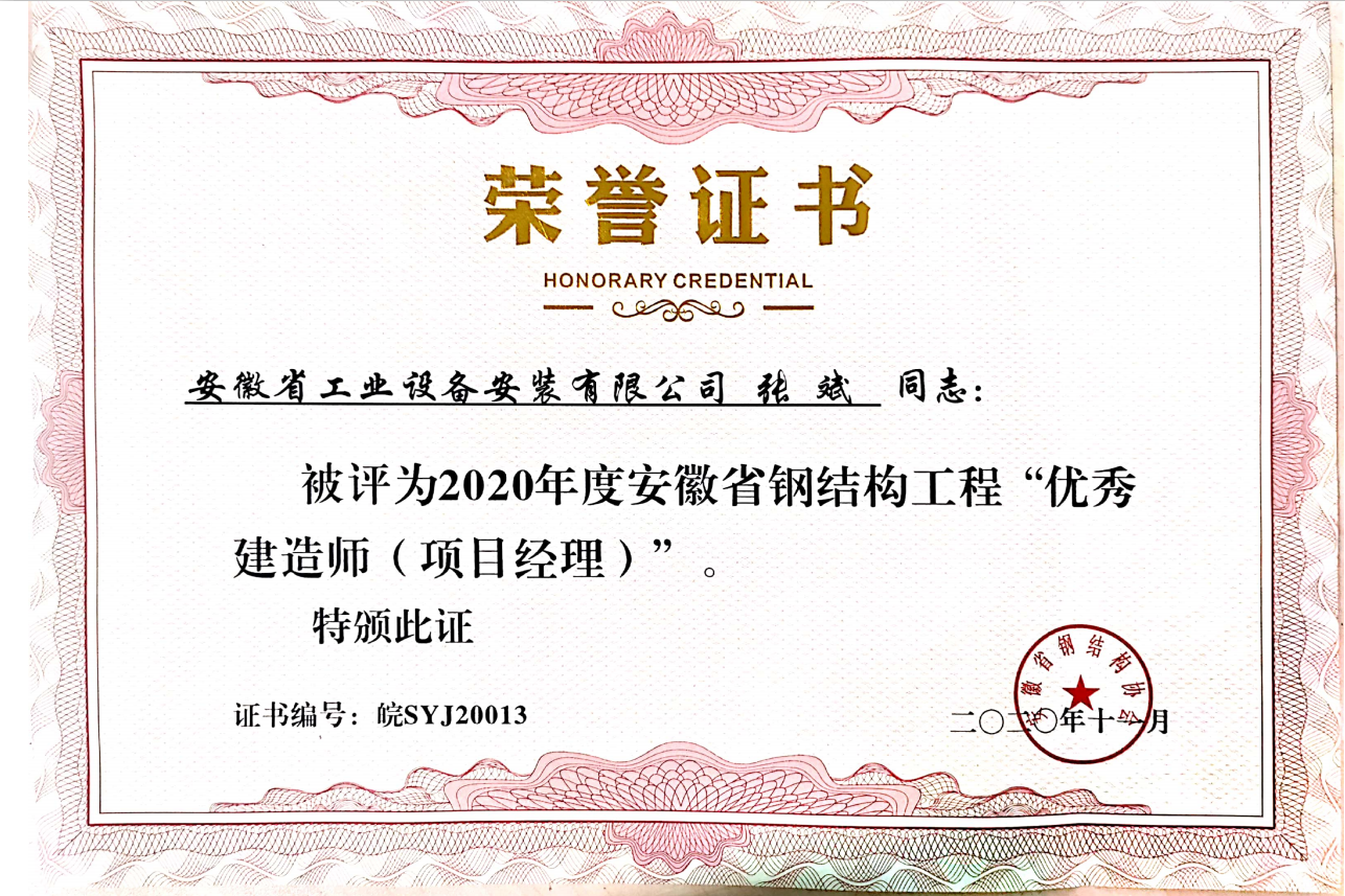 近日,以“聚焦十四五,展望鋼結(jié)構(gòu)”為主題的安徽省鋼結(jié)構(gòu)協(xié)會(huì)三屆二次會(huì)員代表大會(huì)暨學(xué)術(shù)交流會(huì)公布了“皖鋼杯”獲獎(jiǎng)名單,安徽安裝公司承建的淮河試驗(yàn)研究中心(水工河工模型試驗(yàn)廳)一期工程榮獲“皖鋼杯”優(yōu)質(zhì)工程獎(jiǎng),公司黨委書(shū)記、董事長(zhǎng)胡六中榮獲安徽省鋼結(jié)構(gòu)行業(yè)優(yōu)秀企業(yè)家,蚌埠分公司副經(jīng)理、淮河試驗(yàn)研究中心一期工程項(xiàng)目經(jīng)理張斌被評(píng)為優(yōu)秀項(xiàng)目經(jīng)理。這也是我公司首次榮獲鋼結(jié)構(gòu)工程類獎(jiǎng)項(xiàng)。