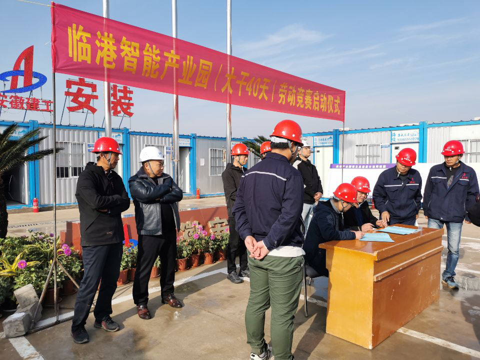 為確保年度各項(xiàng)目標(biāo)任務(wù)順利完成,貫徹落實(shí)集團(tuán)公司開展“戰(zhàn)疫情、搶工期、保目標(biāo)、促超產(chǎn)”為主題勞動(dòng)競(jìng)賽活動(dòng)精神,2020年11月19日上午,安徽安裝召開蚌埠臨港項(xiàng)目“大干40天”勞動(dòng)競(jìng)賽動(dòng)員會(huì)。公司紀(jì)委書記、工會(huì)主席李寬旭,公司相關(guān)部門負(fù)責(zé)人,業(yè)主現(xiàn)場(chǎng)派駐代表李先鋒,總監(jiān)代表姚明,項(xiàng)目勘察單位、設(shè)計(jì)單位代表,蚌埠分公司領(lǐng)導(dǎo)班子成員,項(xiàng)目管理人員和勞務(wù)單位共計(jì)50余人參加活動(dòng)。
