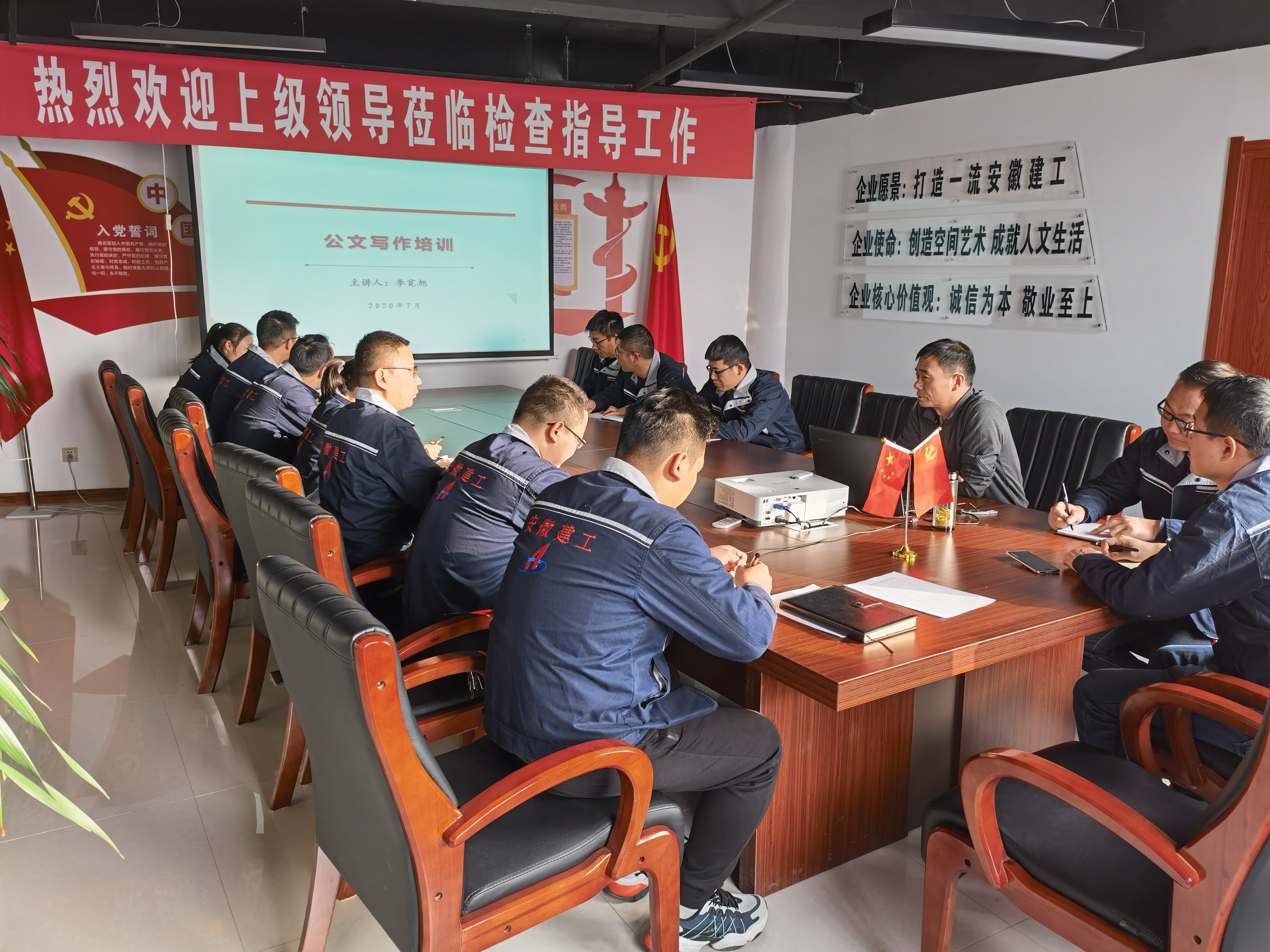 為構(gòu)建學習型分公司,促進常用公文管理規(guī)范化、標準化,提高全員公文寫作能力,12月11日下午,新疆烏蘇分公司組織開展常用公文寫作培訓,公司副總經(jīng)理、分公司黨支部書記、經(jīng)理王軍,分公司領(lǐng)導班子,科室全體人員,項目管理人員參加了培訓。此次培訓由公司紀委書記、工會主席李寬旭主講。