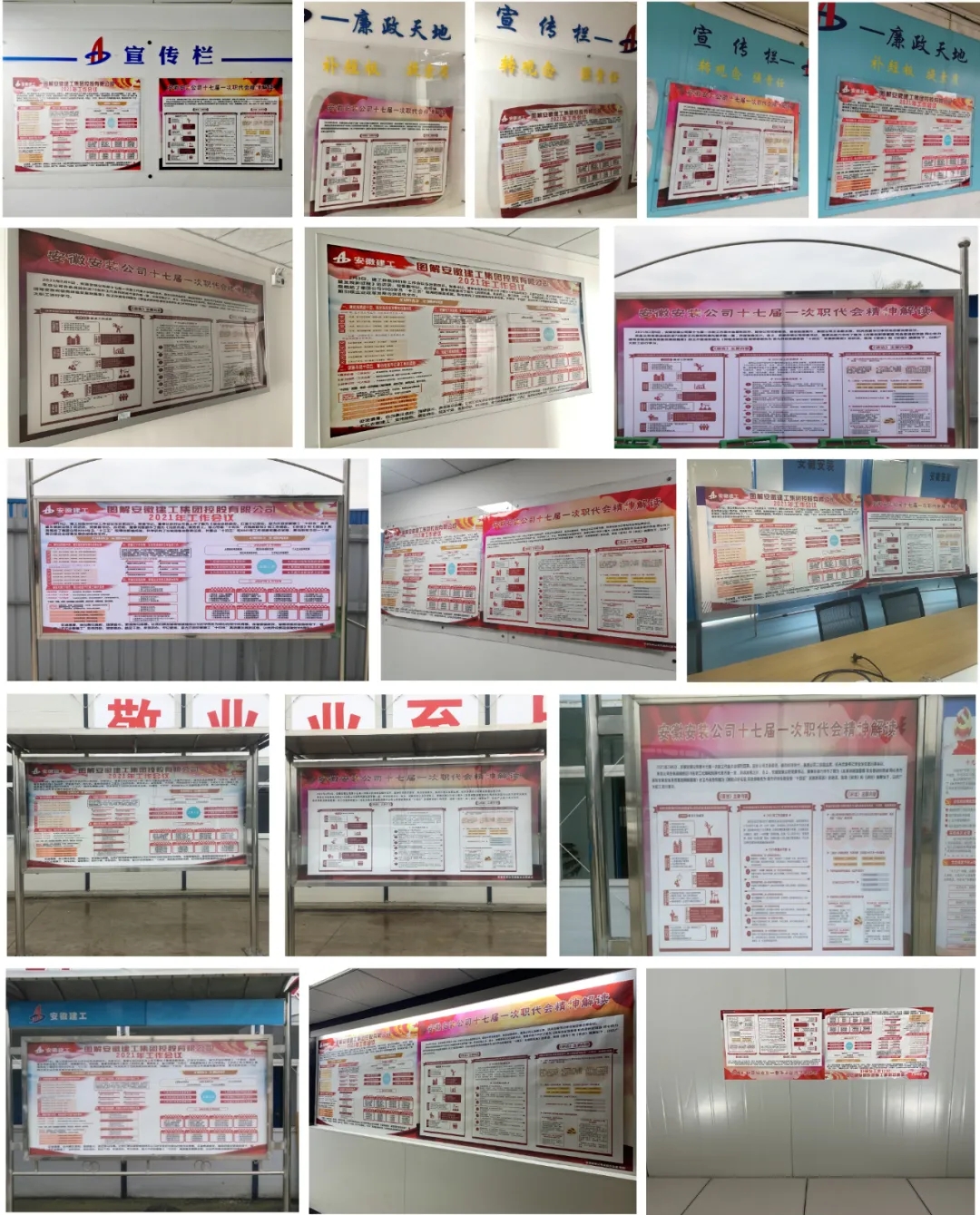 二是順勢(shì)推進(jìn)、以點(diǎn)帶面,采取各種方式營(yíng)造濃厚學(xué)習(xí)氛圍。在兩級(jí)會(huì)議召開(kāi)以后,公司黨委辦公室第一時(shí)間編印宣傳欄及圖解,并及時(shí)發(fā)布在微信公眾號(hào),廣泛宣傳,讓集團(tuán)工作會(huì)議和公司職代會(huì)精神人人皆知、入腦入心,進(jìn)一步凝聚共識(shí)、形成合力,夯實(shí)思想基礎(chǔ)。年后復(fù)工,立即組織各黨支部在機(jī)關(guān)及項(xiàng)目部懸掛張貼宣傳圖、發(fā)放宣傳手冊(cè),掀起學(xué)習(xí)熱潮,營(yíng)造濃厚氛圍,通過(guò)宣傳主陣地形成輿論“正能量”。
