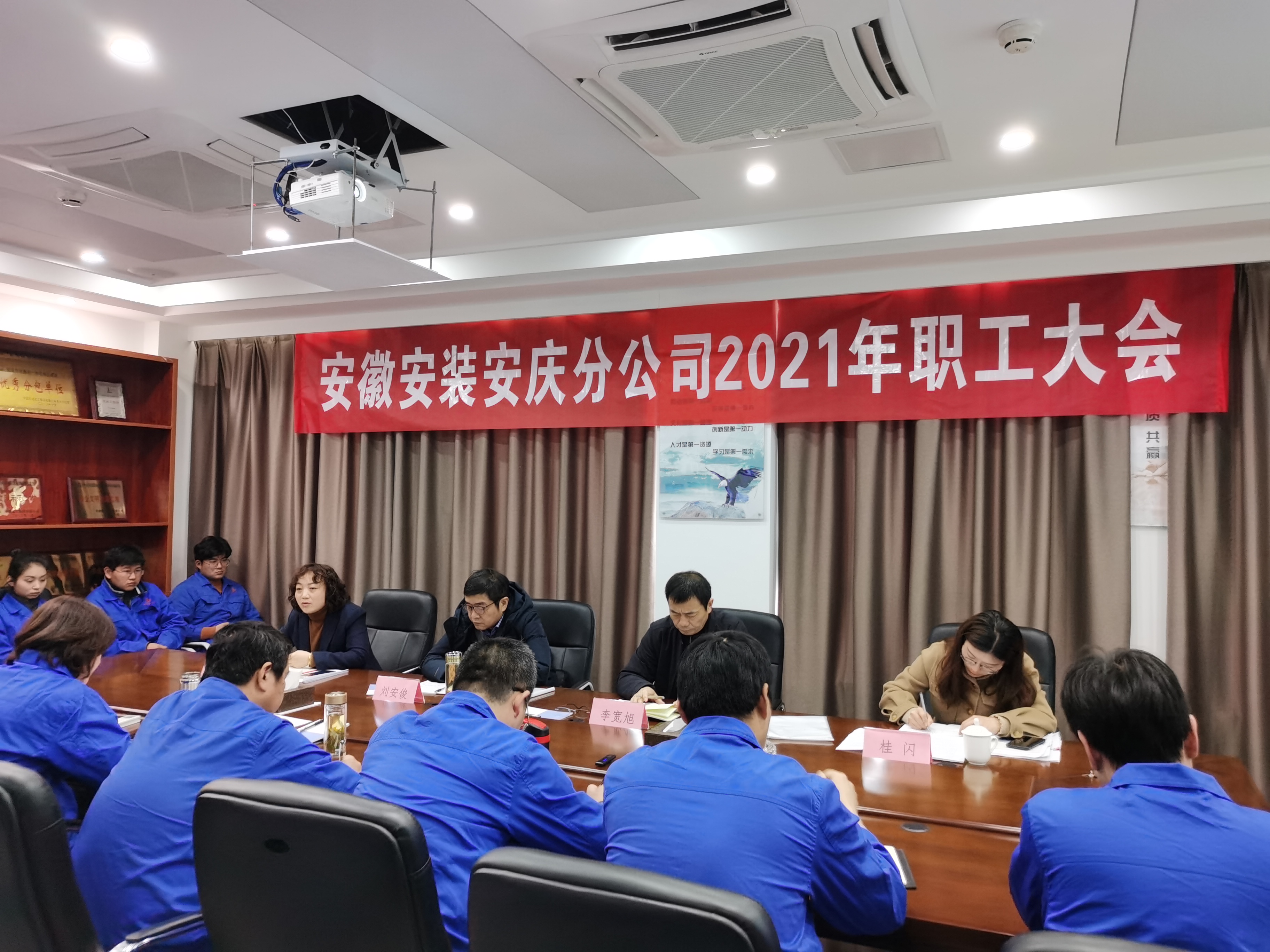 3月9日上午,安徽安裝公司安慶分公司召開2021年職工大會,公司副總經(jīng)理、安慶分公司聯(lián)系點領導劉安俊,紀委書記、工會主席李寬旭應邀出席了大會,人力資源部經(jīng)理王敏及黨委辦公室相關人員,分公司班子成員及機關、項目部員工參加會議,會議由安慶分公司黨支部書記劉紅艷主持。