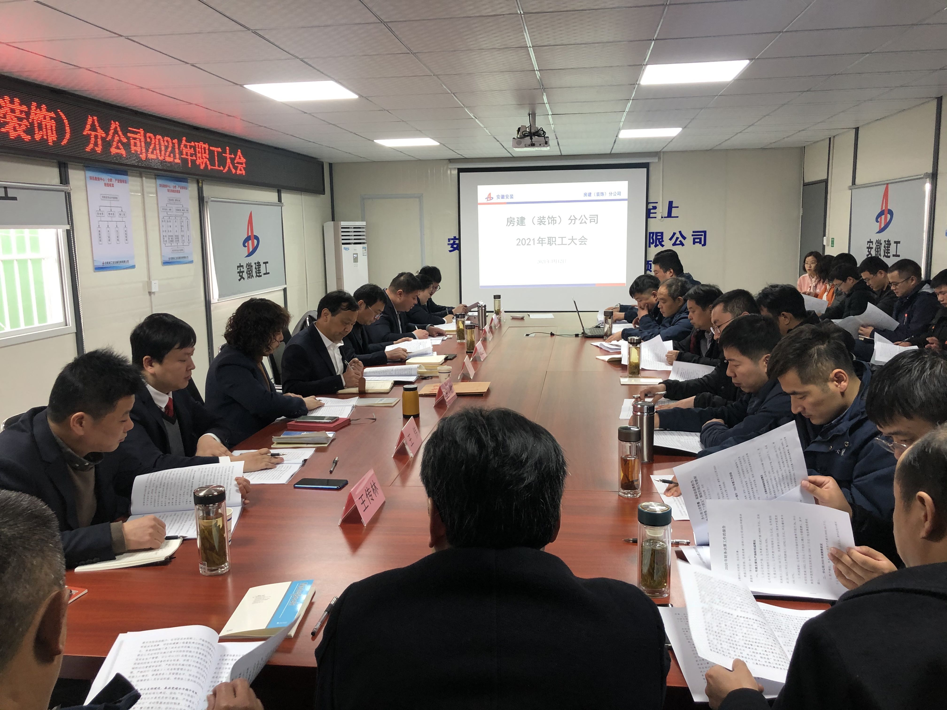 仲春時節(jié),春風(fēng)和煦,杏花飄香。3月12日上午,房建(裝飾)分公司在合肥勝利召開2021年度職工大會。分公司全體職工參加了大會,公司副總經(jīng)理高飛,紀(jì)委書記、工會主席李寬旭,人力資源部及黨委辦公室主要負(fù)責(zé)同志應(yīng)邀出席會議。