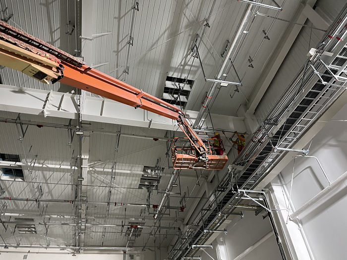 由蚌埠分公司承接的蚌埠康寧藥用硼硅玻璃管廠房設(shè)施建設(shè)工程合同主要工作內(nèi)容包括給暖通空調(diào)系統(tǒng)、給排水系統(tǒng)、消防系統(tǒng)、強(qiáng)電系統(tǒng)、弱電系統(tǒng)、各種工藝管道(氫氣、氧氣、天然氣、柴油、壓縮空氣、純水)、除塵系統(tǒng)、熱排風(fēng)系統(tǒng)、涂覆系統(tǒng)、油霧收集系統(tǒng)、共用支架與抗震支架、室外管架、起重機(jī)和單軌設(shè)備、裝卸平臺(tái)、自動(dòng)地磅等各系統(tǒng)的材料設(shè)備采購(gòu)及安裝工作,內(nèi)容涵蓋機(jī)電工程各個(gè)專業(yè)。