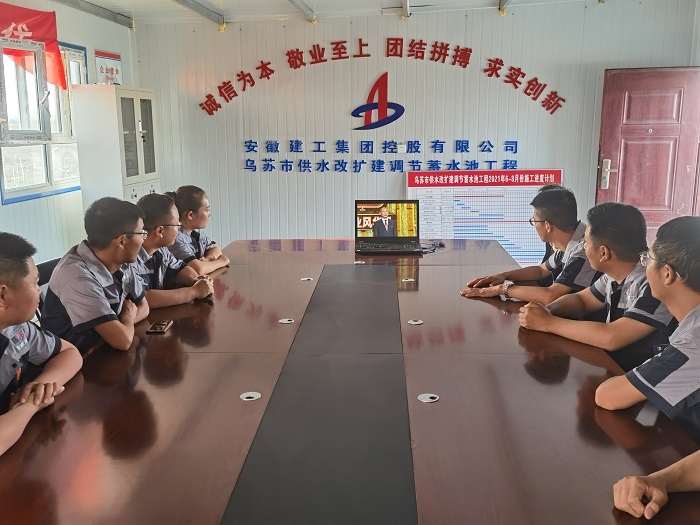新疆烏蘇市供水改擴(kuò)建調(diào)節(jié)蓄水池項目部集中觀看節(jié)目