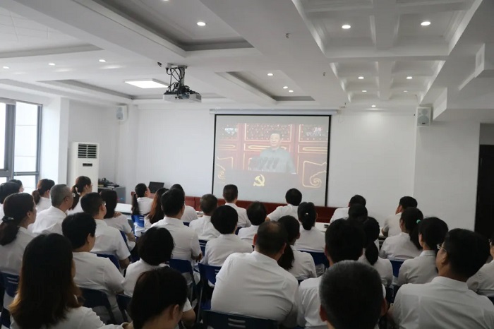 7月1日上午8:00,安徽安裝公司機關(guān)、各基層黨組織、各項目一線第一時間組織職工群眾收聽收看慶祝中國共產(chǎn)黨成立100周年大會直播盛況,聆聽習(xí)近平總書記“七一”重要講話。