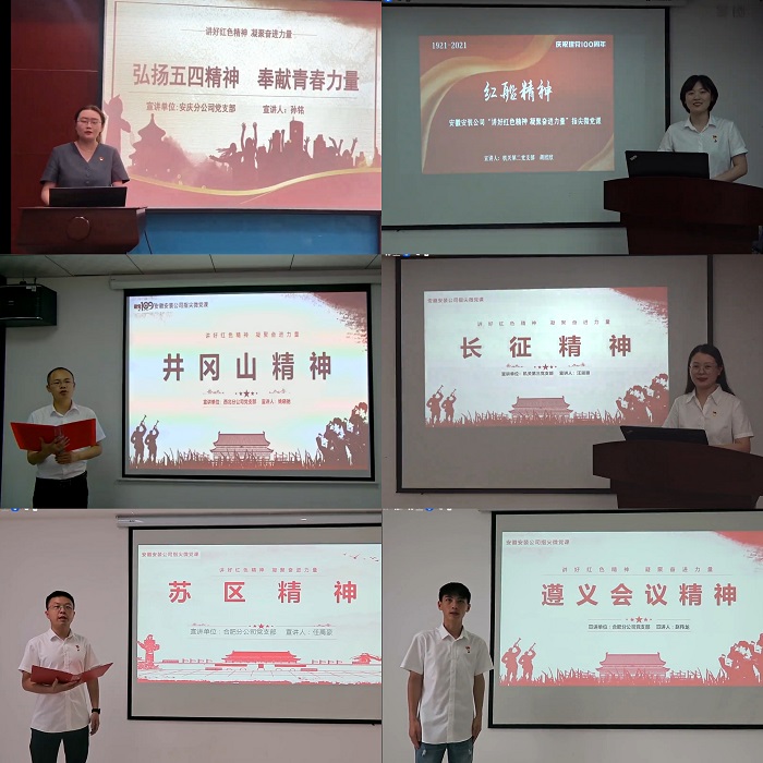 指尖微黨課課堂。為慶祝建黨100周年,促進黨史學(xué)習(xí)教育方式多樣化,讓廣大基層一線黨員尤其是青年黨員同志廣泛參與到黨史宣講中來,公司黨委依托公司官方微信公眾號重新打造安徽安裝的黨課品牌——“指尖微黨課”課堂,組織開展了“講好紅色精神 凝聚奮進力量”指尖微黨課活動。所屬各黨支部積極推薦黨員同志,尤其是基層一線的黨員同志參與到公司黨委“指尖微黨課宣講員”隊伍中來,此次指尖微黨課課堂每集時長5-8分鐘,短小簡潔且內(nèi)涵豐富,以五四精神、紅船精神、井岡山精神、延安精神、航天精神、偉大抗疫精神等人民熔鑄鍛造的偉大紅色精神為主題,講述這些紅色精神背后的感人故事,圍繞每一期紅色精神主題,主講人結(jié)合自身工作實際,談感想談體會。指尖微黨課旨在變“被動學(xué)”為“主動講”,變“集中念開會讀”為“隨時看隨地學(xué)”,解決了公司項目點多面廣,黨員分散不易集中系統(tǒng)學(xué)習(xí)的問題,現(xiàn)在只要打開手機,利用零碎時間就可以通過身邊人的宣講更直觀更生動地領(lǐng)略黨史中的奮進力量,切實做到“人人都是宣講員、黨課揣進口袋中”。