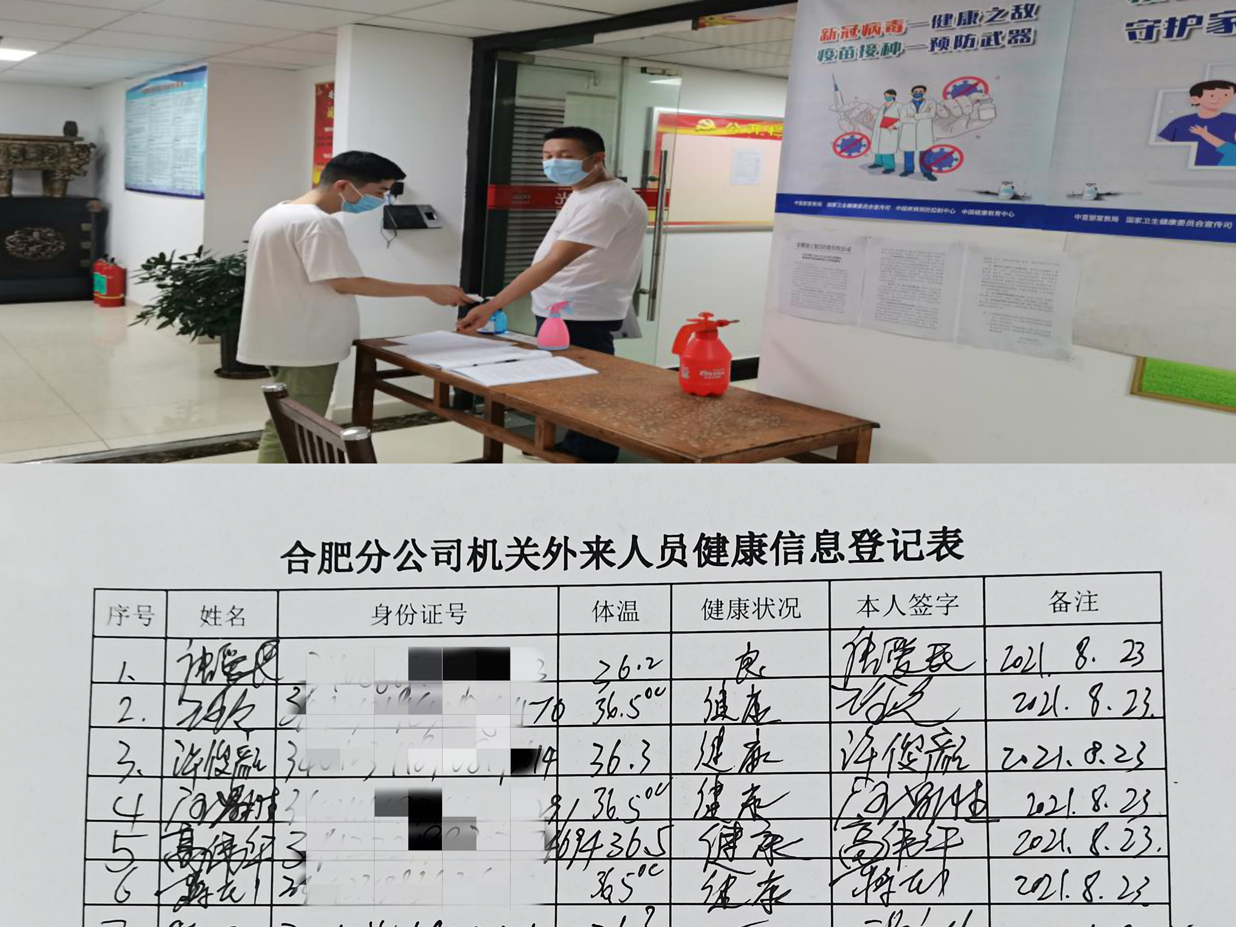 分公司機關(guān)每日體溫監(jiān)測并進(jìn)行外來人員信息登記表
