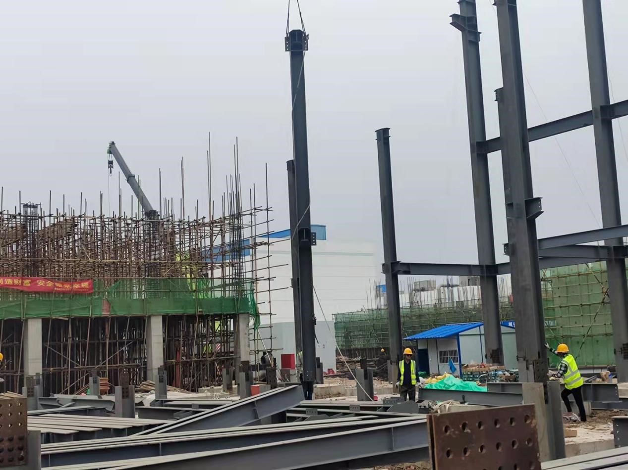 發(fā)酵車(chē)間C區(qū)鋼結(jié)構(gòu)區(qū)域,吊裝作業(yè)正在如火如荼進(jìn)行;B區(qū)滿堂腳手架緊張搭設(shè),鋼筋工頂著烈日進(jìn)行鋼筋綁扎,投料車(chē)間兩臺(tái)挖機(jī)聯(lián)動(dòng),進(jìn)行管廊支架基礎(chǔ)基坑開(kāi)挖,控制車(chē)間正在忙忙碌碌進(jìn)行內(nèi)墻二次結(jié)構(gòu)砌筑。各個(gè)車(chē)間有條不紊的忙碌著,整個(gè)項(xiàng)目現(xiàn)場(chǎng)一片火熱,迅速掀起“比、學(xué)、趕、幫、超”施工高潮!