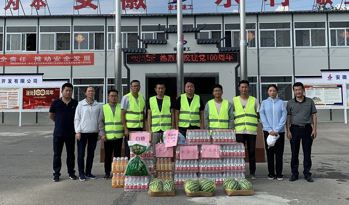 為做好高溫天氣下項(xiàng)目施工防暑降溫工作,切實(shí)保障項(xiàng)目一線職工的安全健康,確保安全生產(chǎn)工作順利展開,7月15日以來(lái)合肥分公司領(lǐng)導(dǎo)班子成員分別前往宿州新宇藥業(yè)、靈璧迎賓大道、固鎮(zhèn)三八河景觀工程、潛山高鐵站前廣場(chǎng)等各在建項(xiàng)目現(xiàn)場(chǎng),開展夏日“送清涼”慰問(wèn)活動(dòng),為現(xiàn)場(chǎng)一線工作人員送去防暑降溫慰問(wèn)物資,并對(duì)酷暑天氣仍然堅(jiān)守在一線施工作業(yè)人員表示親切的關(guān)心和問(wèn)候。