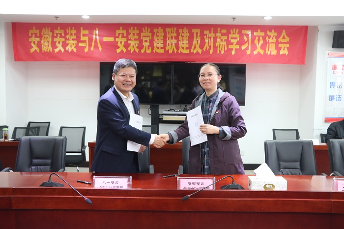 彭來雨對安徽安裝公司的熱情接待表示衷心感謝。彭來雨指出,安徽安裝公司是安徽省安裝行業(yè)的老牌國企,具有悠久歷史,取得了較為輝煌的成績,正朝著高質量發(fā)展的道路穩(wěn)步前進,發(fā)展勢頭強勁。彭來雨表示,本次與安徽安裝公司合肥分公司黨支部搭建黨建聯(lián)建共建平臺,旨在進一步加強交流學習,促進八一安裝和安徽安裝在黨建及更多業(yè)務領域的合作,共同促進兩家企業(yè)高質量發(fā)展。
