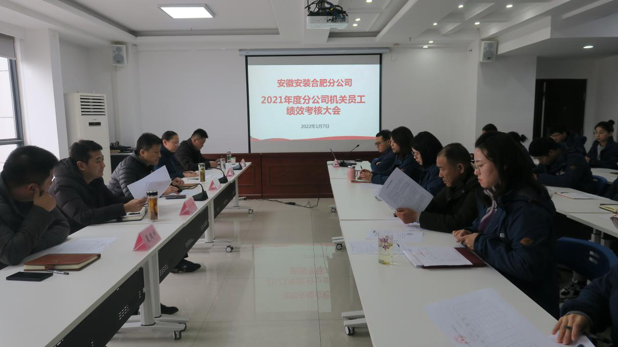 為總結回顧2021年度分公司機關各部門和各項目部的工作情況,籌劃2022年的工作任務與工作計劃,進一步完善崗位績效考核體系,調動廣大員工工作積極性、主動性和創(chuàng)造性,2022年1月7日至24日,合肥分公司以現(xiàn)場考核和視頻考核會議相結合的方式,開展了“2021年度機關部門和全體員工績效考核工作”,考核分為分公司機關部門、機關員工和項目部員工三個部分四個階段進行。