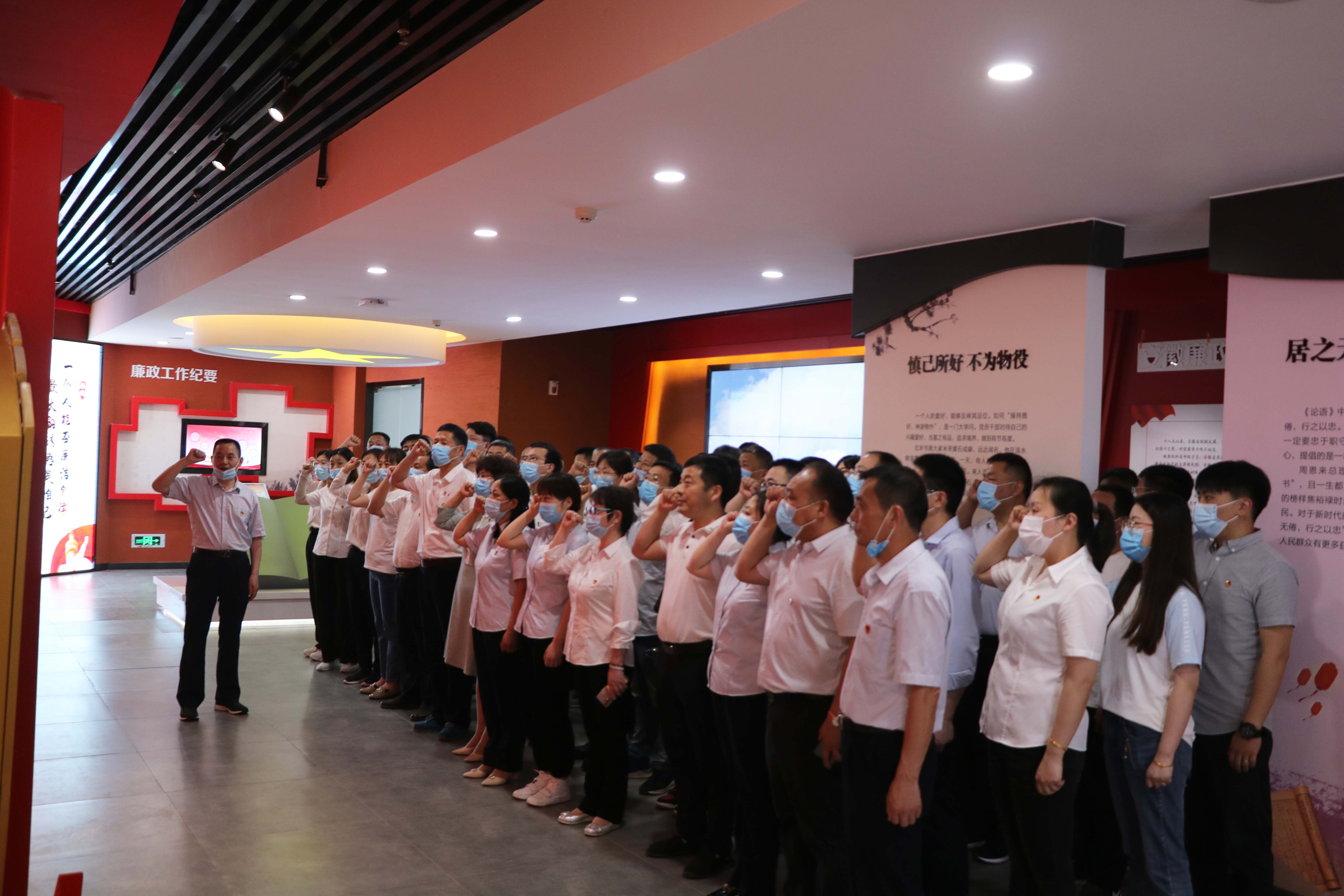 瑤海區(qū)人民法院廉政文化館共兩層,內(nèi)容分為“廉政文化館”“法治文化教育館”和“院史陳列館”三個(gè)篇章,綜合運(yùn)用展板、實(shí)物、雕塑、場景、聲光電等多種形式,將歷史與現(xiàn)實(shí)緊密結(jié)合,多角度、大縱深地闡釋廉潔文化這一主題。在一樓警示教育報(bào)告廳里,在講解員的解說下,大家依次參觀了鑒史問廉、廉政故事、貪腐之害、時(shí)光隧道、廉潔豐碑、廉政成果、廉政文章、廉政寄語八大板塊,參觀過程中大家仔細(xì)聆聽,細(xì)細(xì)研讀,通過展廳內(nèi)文字、實(shí)物、整合的典型圖文資料、影音影像等,深入學(xué)習(xí)了廉政文化、中國共產(chǎn)黨反腐倡廉歷史、安徽省反腐倡廉實(shí)踐等內(nèi)容,大家在視覺、聽覺上接受了一堂全面生動(dòng)的反腐倡廉警示教育課?;顒?dòng)期間,公司黨委書記、董事長胡六中帶領(lǐng)在場全體黨員集體重溫入黨誓詞。