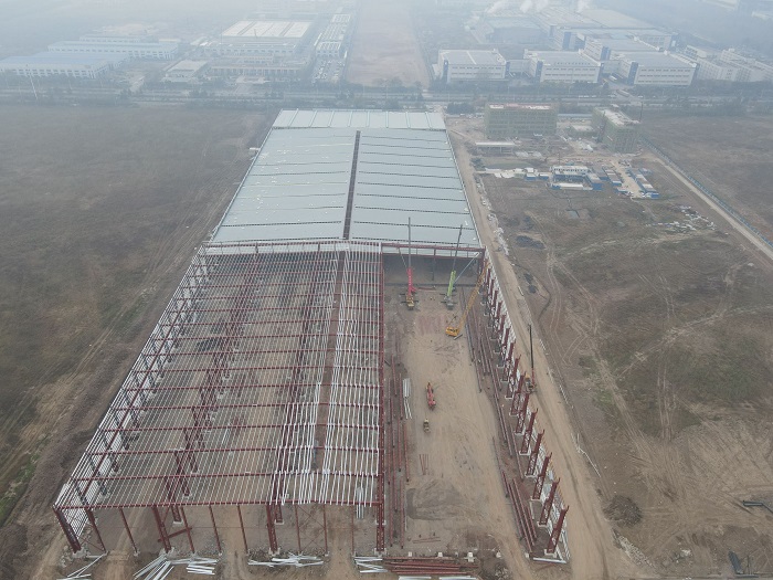 由合肥分公司承建的安徽建工智能鋼構(gòu)項目正在緊張施工中,現(xiàn)主體架構(gòu)已初現(xiàn)雛形。11月17日上午,項目部“50米跨屋面梁吊裝”工作正在進(jìn)行,公司總工程師吳繼成現(xiàn)場指導(dǎo)吊裝工作,并為第一榀屋面梁進(jìn)行掛紅儀式。公司總經(jīng)理助理、合肥分公司經(jīng)理、黨支部書記趙永峰,公司總工辦、安全部等相關(guān)部門負(fù)責(zé)同志參加。