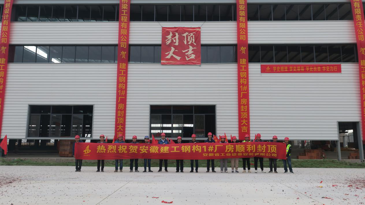 大干四季度,起航再?zèng)_鋒。12月8日上午,隨著最后一片屋面板的鋪設(shè)完成,合肥分公司建工鋼構(gòu)項(xiàng)目1#廠房順利封頂,標(biāo)志著建工鋼構(gòu)項(xiàng)目主體施工全部完成。安徽路橋橋梁分公司黨總支書記、副總經(jīng)理劉振嶺、公司總經(jīng)理助理、合肥分公司黨支部書記、經(jīng)理趙永峰等出席封頂儀式。與項(xiàng)目部全體員工共同見證這一重要時(shí)刻。