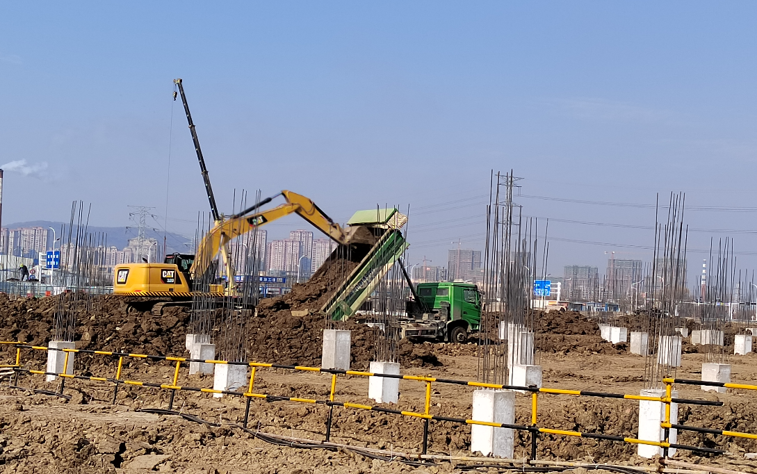 現(xiàn)場隨處可見的挖掘機(jī)、裝載車、吊車的轟鳴聲與工人師傅們緊張忙碌的工作場景交織在一起,勾勒出一派繁忙、壯觀、熱火朝天的節(jié)日大干火熱場景。