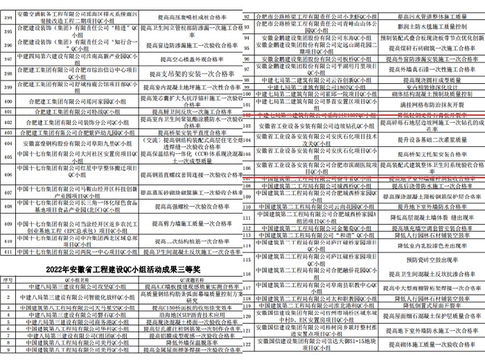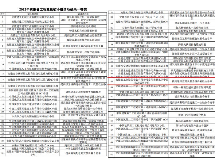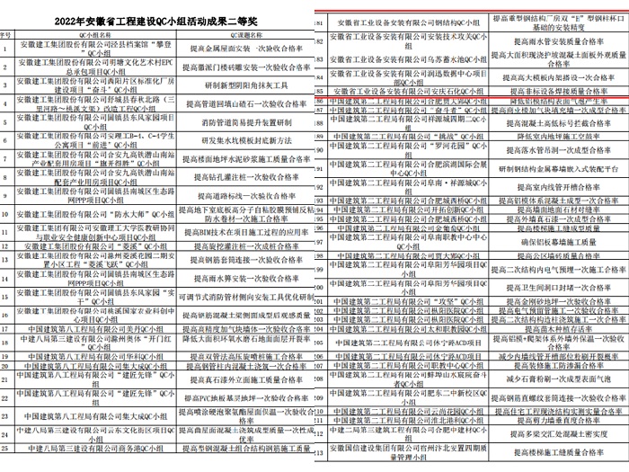 近日,從安徽省建設(shè)行業(yè)質(zhì)量與安全協(xié)會傳來喜訊,協(xié)會發(fā)布的《關(guān)于2022年安徽省工程質(zhì)量管理小組及質(zhì)量信得過班組建設(shè)活動成果的通知》文件中,安徽安裝公司共獲得11項安徽省工程建設(shè)QC小組活動成果獎項。