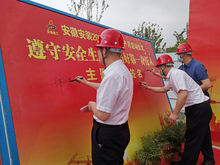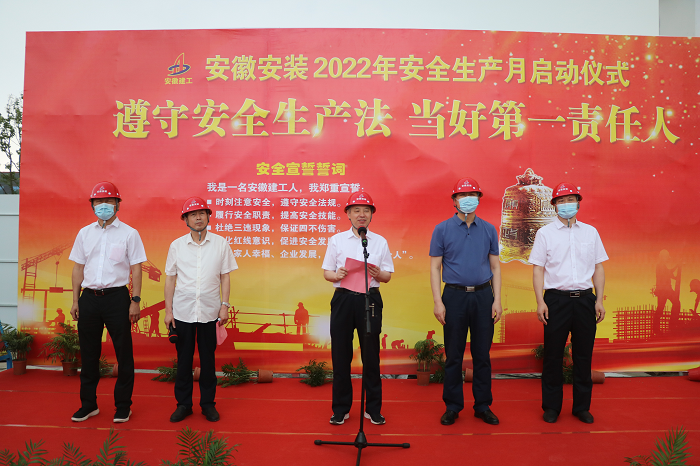 在全國(guó)第21個(gè)“安全生產(chǎn)月”活動(dòng)到來(lái)之際,5月30日上午,安徽安裝公司2022年“安全生產(chǎn)月”啟動(dòng)儀式在年配套1000萬(wàn)臺(tái)新能源汽車及年產(chǎn)2億臺(tái)制冷空調(diào)壓縮機(jī)關(guān)鍵性能件制造基地項(xiàng)目舉行。公司黨委書記、董事長(zhǎng)胡六中,紀(jì)委書記、工會(huì)主席李楊,副總經(jīng)理趙伯平,總工程師吳繼成及機(jī)關(guān)各部門、各分公司代表參加了本次活動(dòng)。