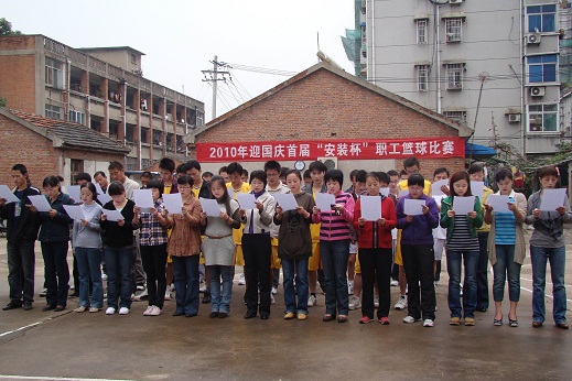9月28日上午,寂靜已久的公司籃球場熱鬧非凡。由公司工會主辦的2010年迎國慶首屆“安裝杯”職工籃球比賽在此拉開帷幕。來自第壹分公司、蚌埠分公司、安慶分公司、公司機(jī)關(guān)的四個代表隊和機(jī)關(guān)員工參加了開幕式。