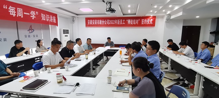 為促進新員工快速成長,加快公司人才隊伍建設,8月17日,市政分公司舉行了2022年新員工“師徒結對”簽約儀式。分公司領導班子、全體員工參加儀式。