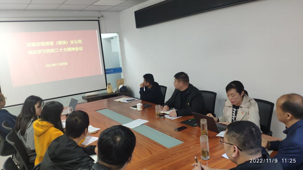 11月9日上午,房建(裝飾)分公司黨支部組織全體黨員、在肥干部職工、項(xiàng)目經(jīng)理召開學(xué)習(xí)研討黨的二十大精神專題會(huì)議。會(huì)議要求,全體干部職工要統(tǒng)一思想,凝心聚力,把學(xué)習(xí)二十大精神與與分公司實(shí)際工作相結(jié)合,對(duì)照年初各項(xiàng)指標(biāo)任務(wù),努力強(qiáng)弱項(xiàng),補(bǔ)短板,狠抓落實(shí),推動(dòng)分公司各項(xiàng)工作上臺(tái)階。